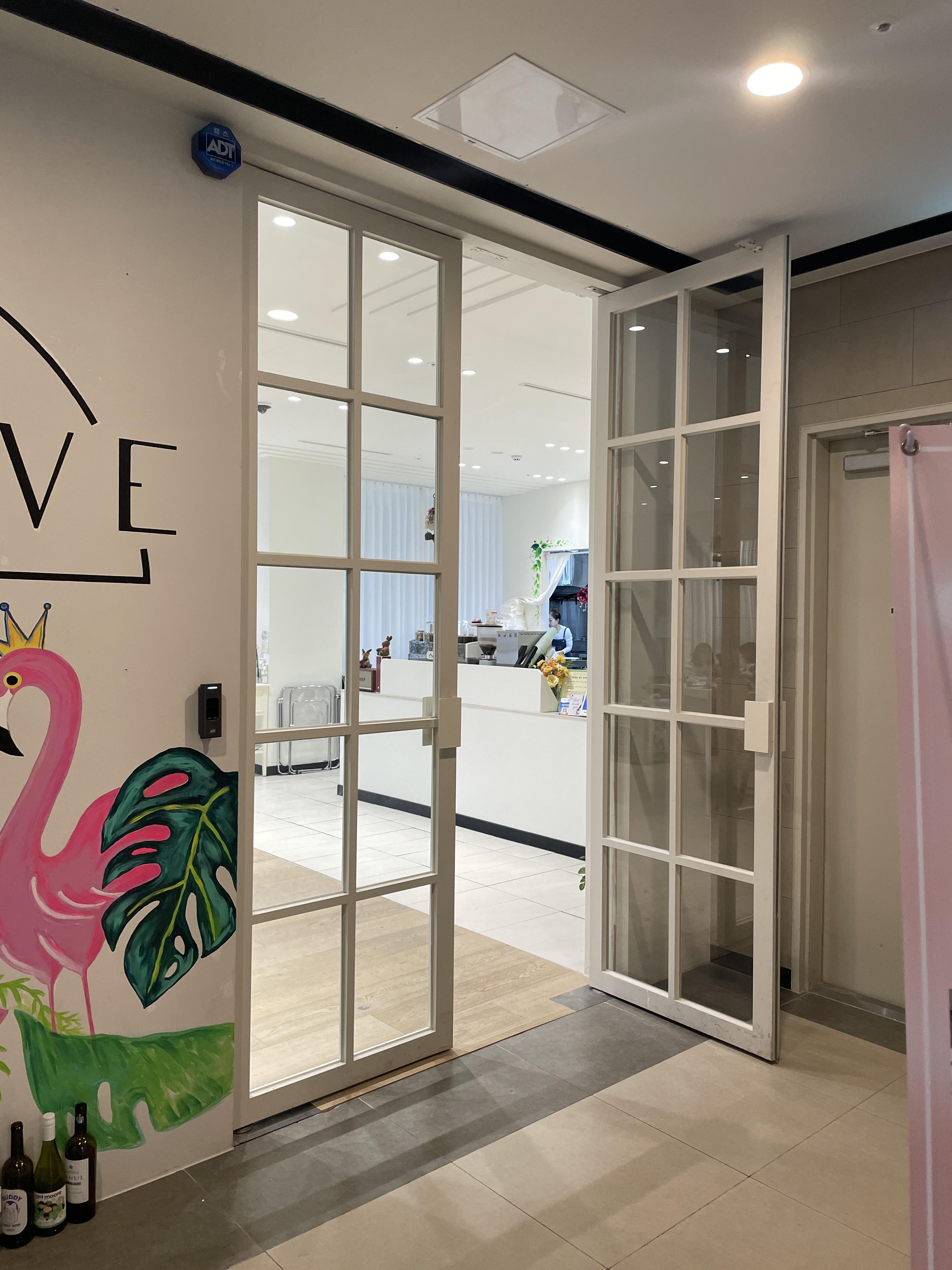 처음 입구에서는 펑키한 그림들과 와인병들이 있어서 많은 인테리어 소품들과 다양한 컬러를 사용해서 공간 인테리어를 하셨겠구나 했어요!! 그런데 반전 통유리 도어를 열고 들어가 보니!!!!
