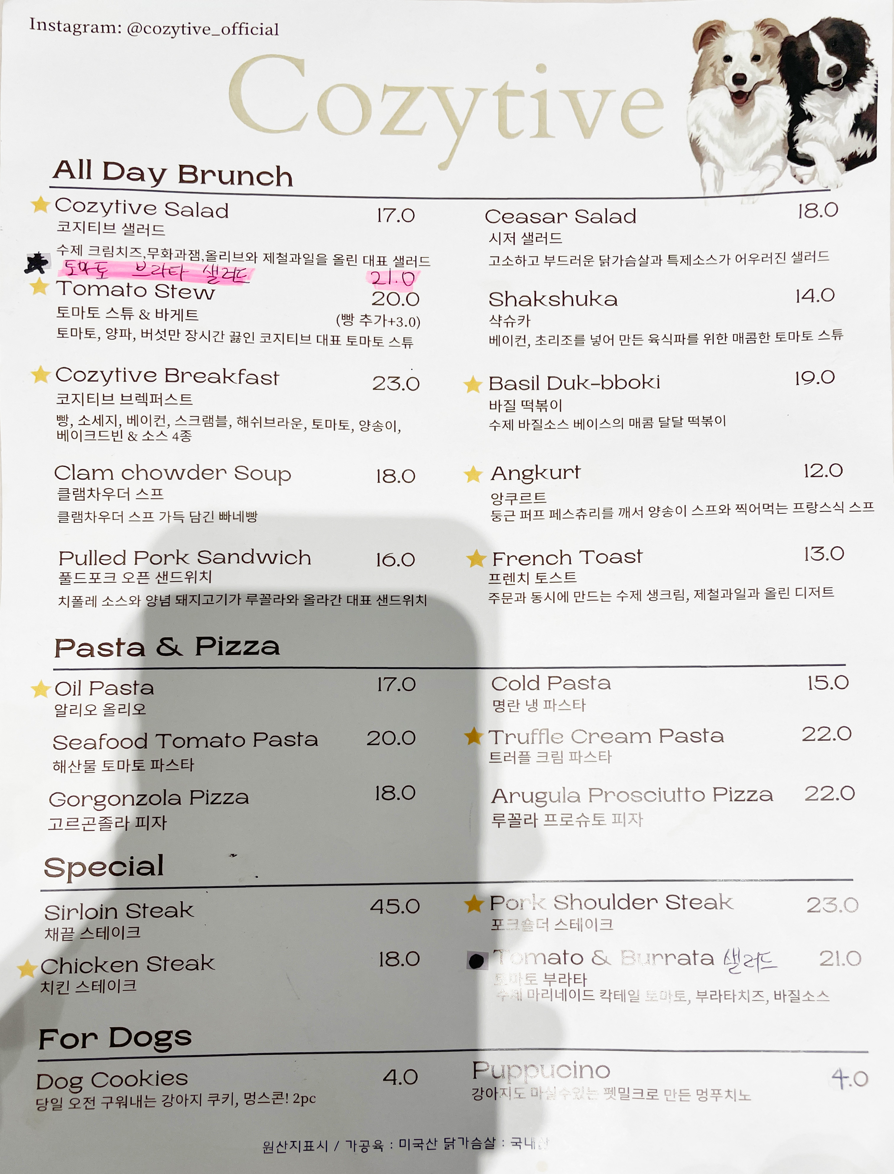 강아지와 같이 코지티브에 놀러가시면 너무 좋으거 같아요 추천드립니다!!! 음식도 좋고 분위기도 좋고!! 강아지들끼리 교감도 될 수 있어서 좋아요~!! 저는 조만간 또 찾아 갈 예정입니다!!!