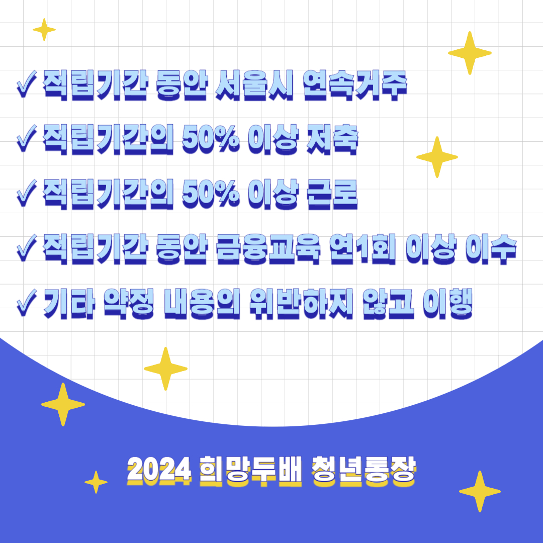 이번 포스팅에서는 2024 서울시 희망두배 청년통장 신청 조건 및 기간, 방법, 필요서류에 대해서 알아봤어요!!