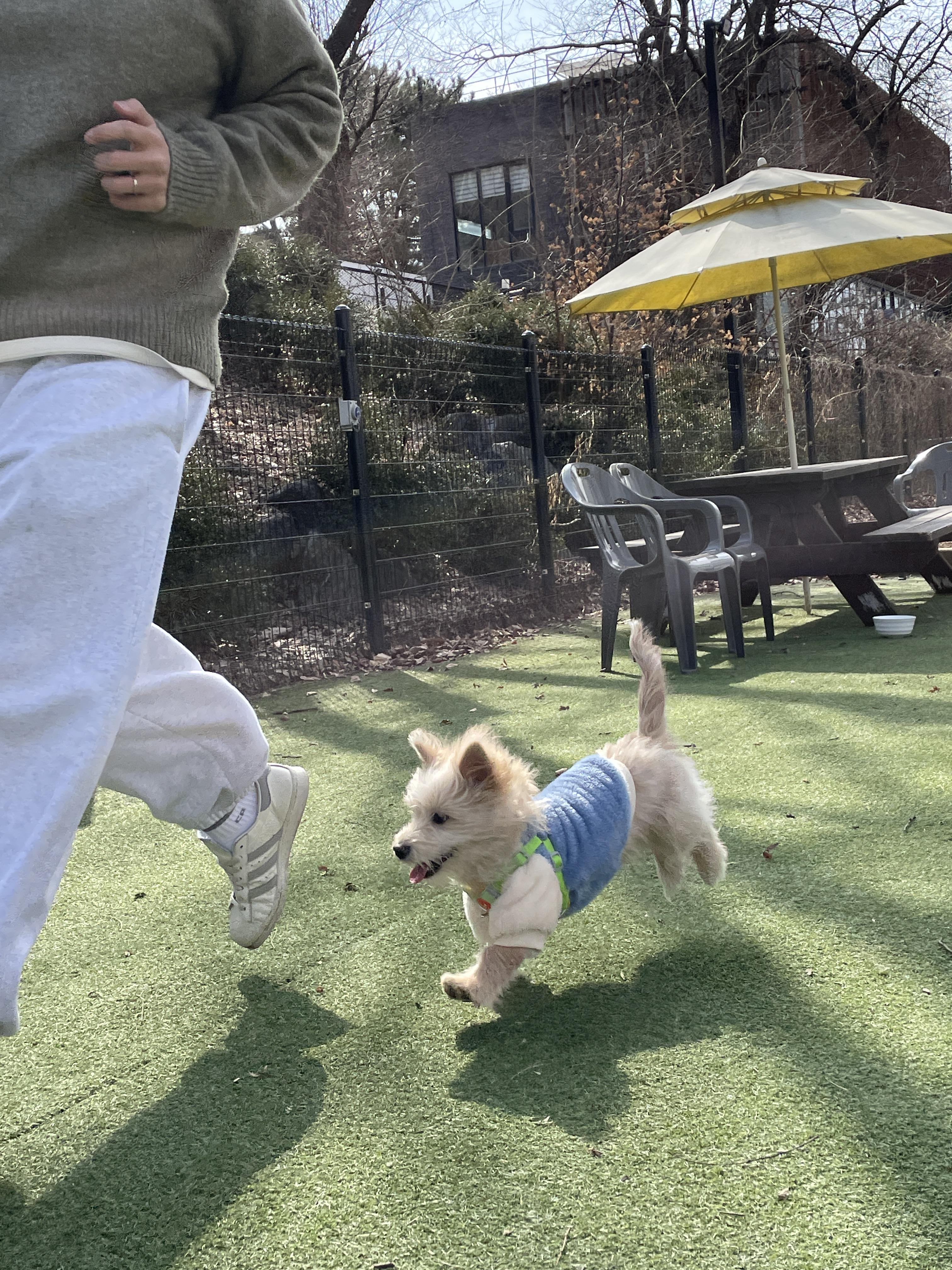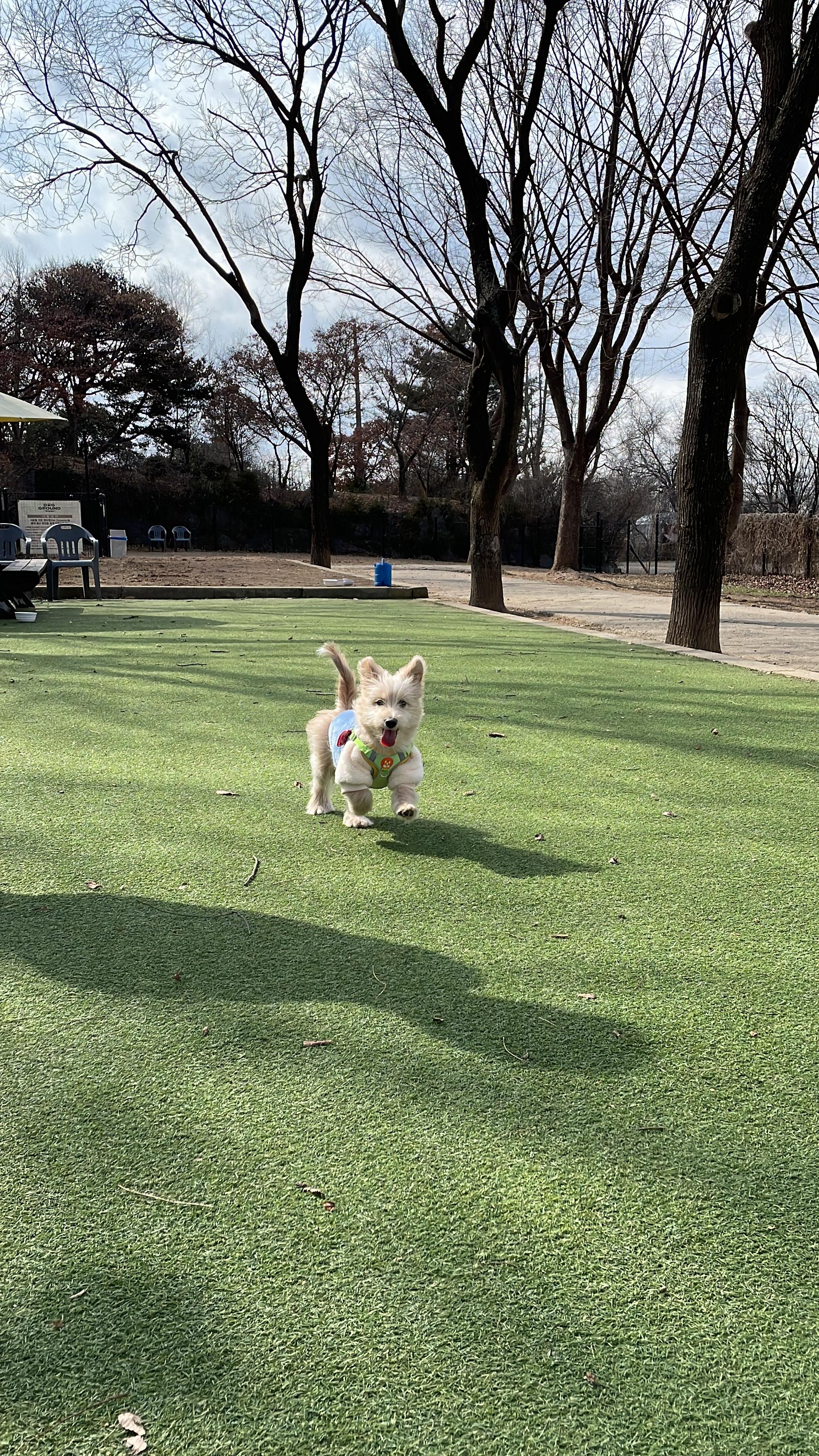 중, 소형견 운동장은 장애물들도 많았고 댕댕이들이 뛰어놀 수 있는 최적의 공간인 거 같았어요 룽지가 나갔을 때 다른 작은 댕댕이들이 있어서 룽지가 완전 신났었어요!! 룽지는 사람보다 다른 댕댕이들이랑 노는 걸 좋아해서 룽지 세상이었어요