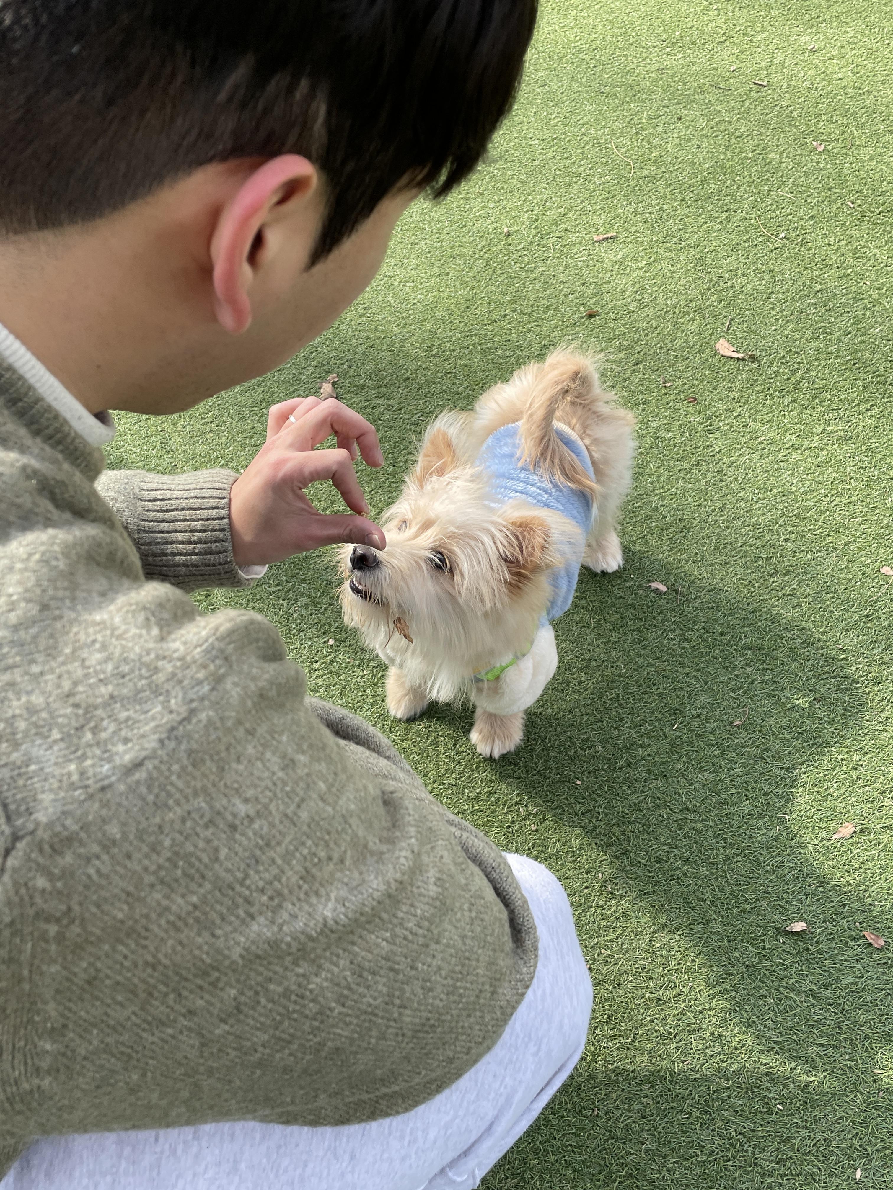 우선 룽지한테 간식으로 유혹을 하고!! 한바탕 뛰려고 준비했어요 ㅋㅋㅋ 아까 배운 교육방법을 써가면서 룽지!~룽지~!