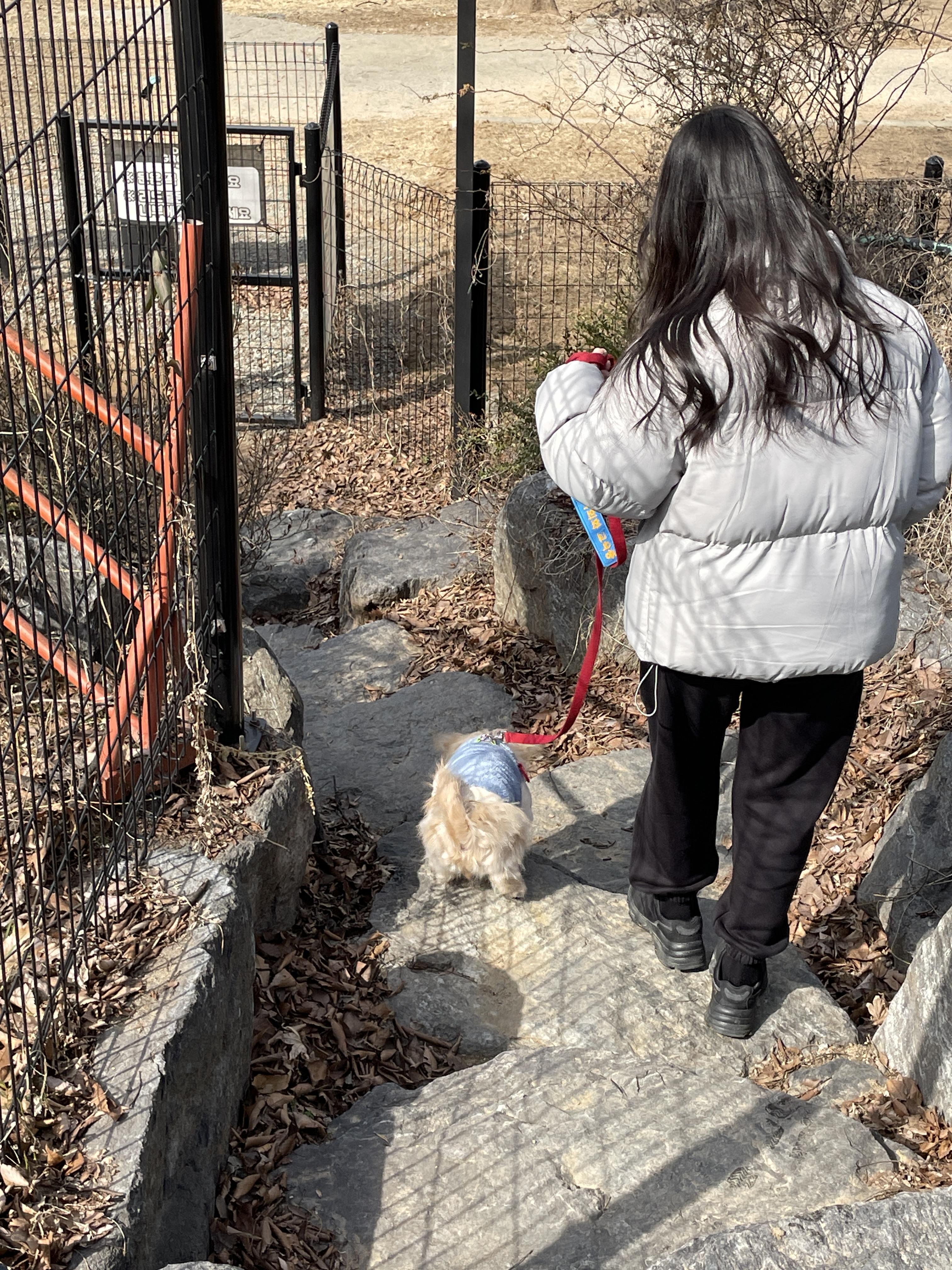 아무도 없는 틈을 타서 중. 대형견 운동장을 먼저 투어!! 예전에는 계단도 못 내려가던 룽지.. 이제는 쫌 컸다고 짧은 다리로 폴짝폴짝 내려가네요😝😝 너무 귀여워요 진짜 룽지야 그런데 더 많이 크지 말장..ㅎㅎ 그래도 건강하게 무럭무럭 자라자!