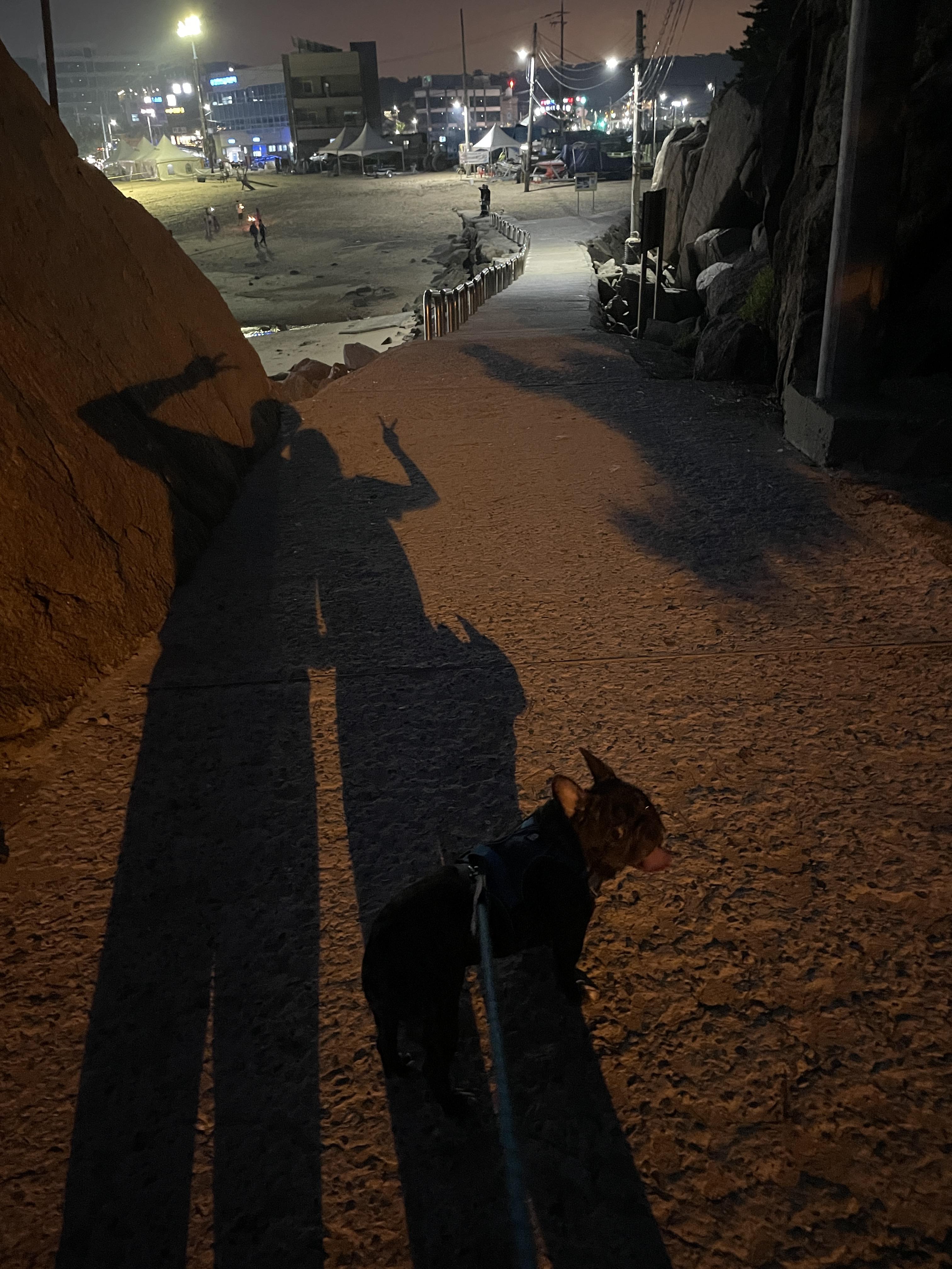 모래를 밟는 느낌이 좋은가 봐요 계속 꾹꾹 밟더라고요. 어색할 법한데 당당하게 촐랑촐랑 걷는 게 너무 귀여웠어요🦮🦮