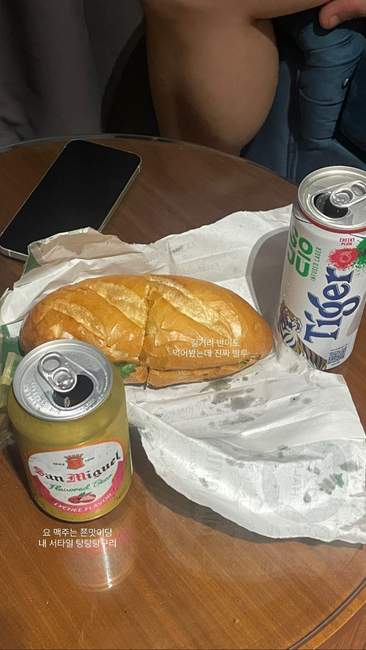 길거리에 유리 케이스로 해서 반미를 파는 곳이 많이 있어서 아까 반미가 너무 맛있어서 안주로 반미를 한 개 사서 들어갔어요!!! 그런데 맥주는 너무 맛있었는데 이번 길거리 반미는 ... 실패였어요.. 너무나 실패..