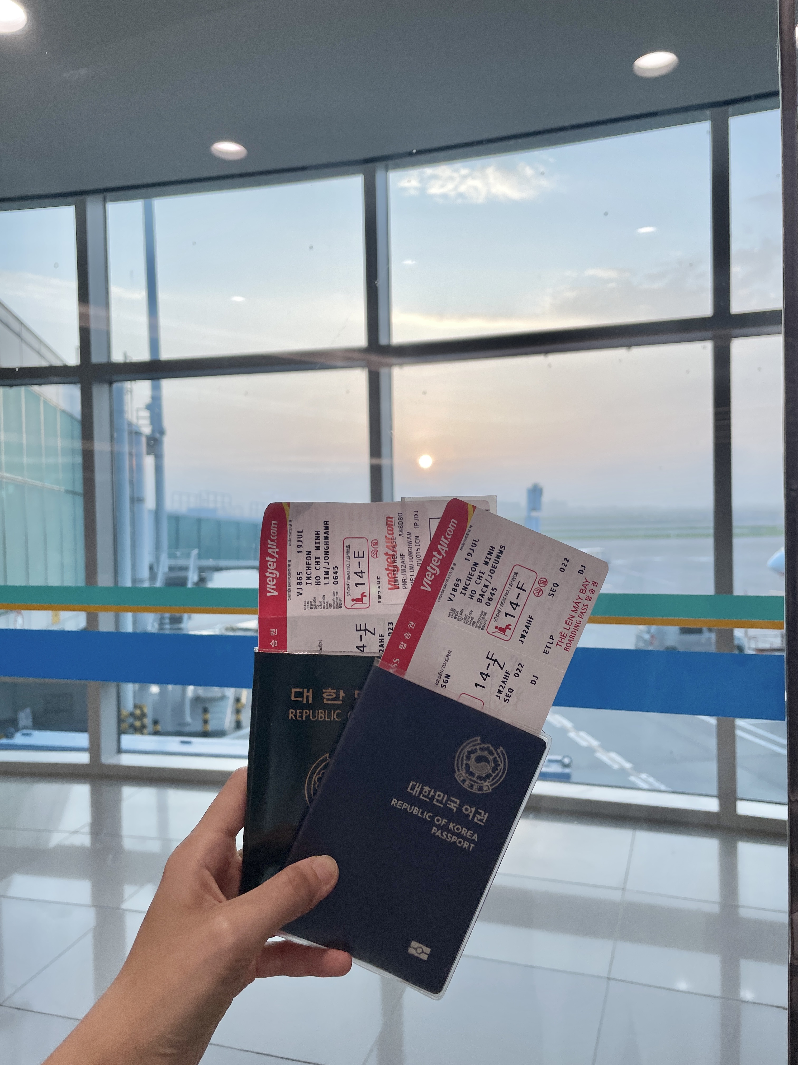 드디어 티켓 발권 받고 비행기로~ 저희는 비엣젯 베트남 국적기 타고 베트남(탄손누트국제공항 T2)으로 쓩~ 날아갔어요