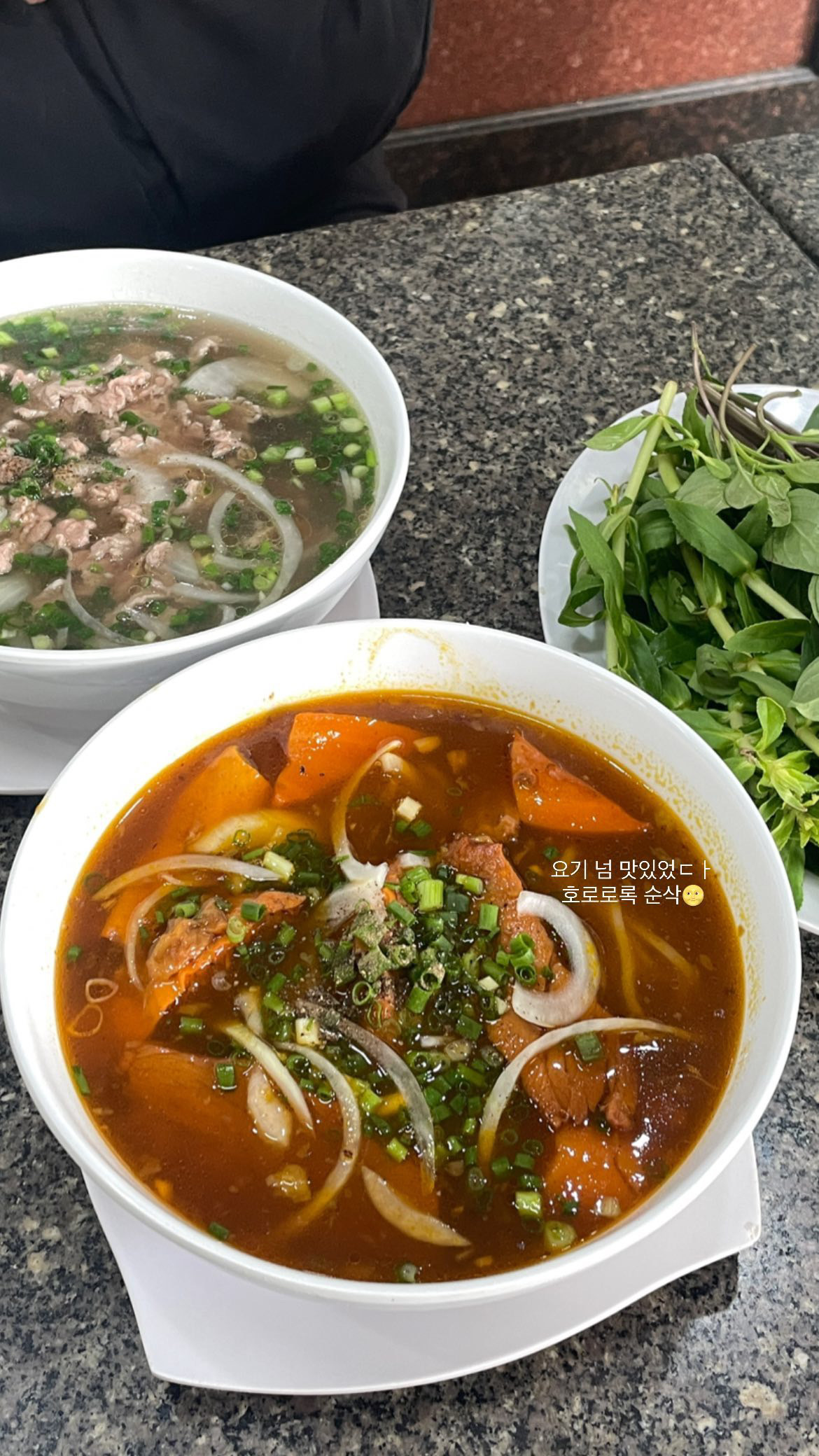 호치민에서 쌀국수로 유명한 로컬 식당에서 점심을 먹었어요!! 이미 맛집으로 유명해서 관광객들도 많고 현지인 분들도 많더라고요. 메뉴중에 1번 레어 비프 쌀국수, 11번 매운 비엣남 비프 쌀국수가 유명해서 저희는 두개를 시켰어요 👍 👍 사람들이 추천한 이유가 있는거 같아요!! 정말 맛있었어요 !! 고수도 정말 어마무시하게 주셨지만 저희는 고수를 못먹기 때문에 패스 ...ㅎㅎㅎ 근데 저희도 맛있으면 얼마나 맛있을까 했지만 정말 맛있었어요 향신료 향이 세지 않을까 싶었는데 그렇지않고 아주 깔끔해서 국물까지 호로록~!! 했어요 👍 됴았오 차찻찻👍