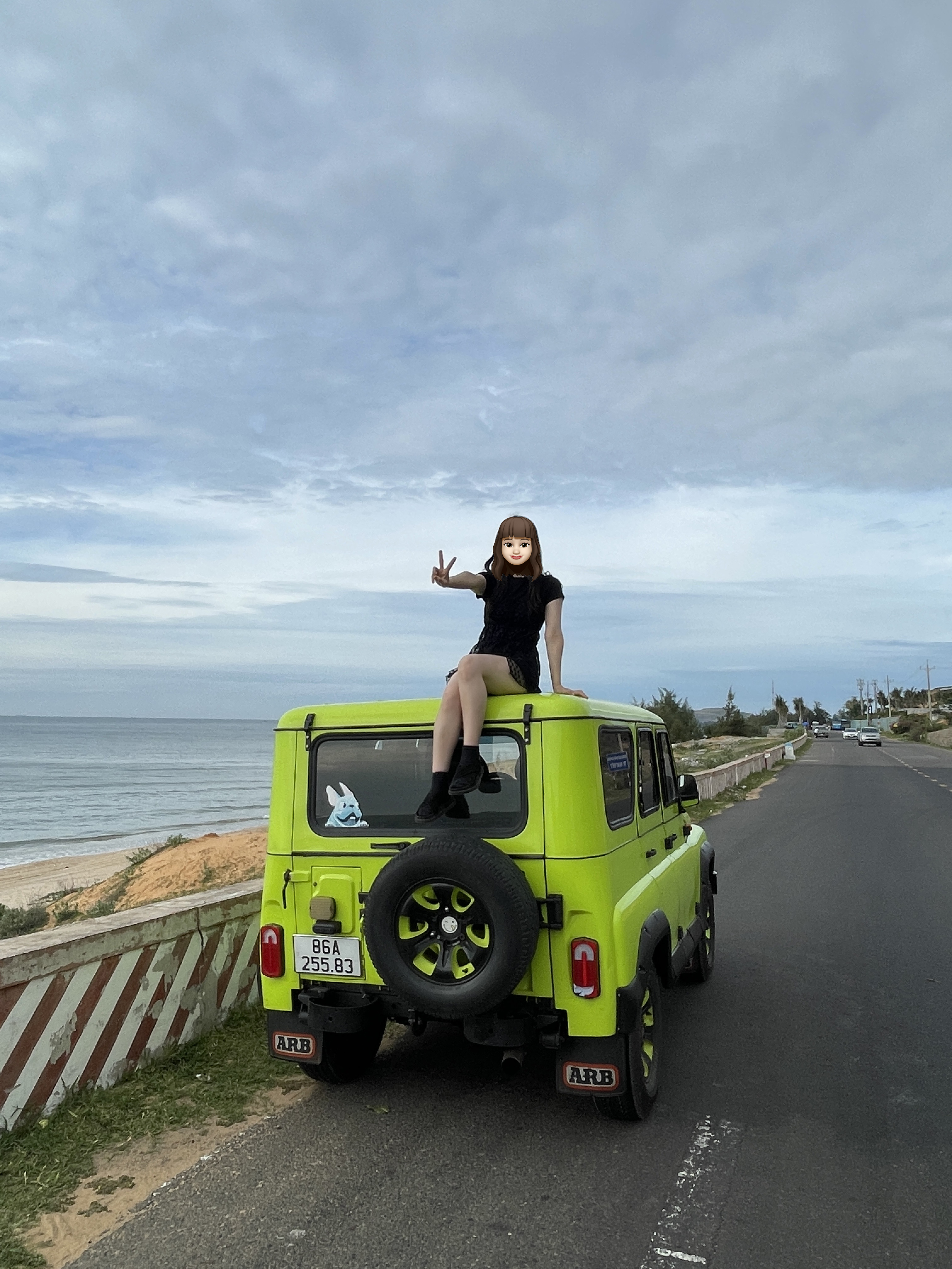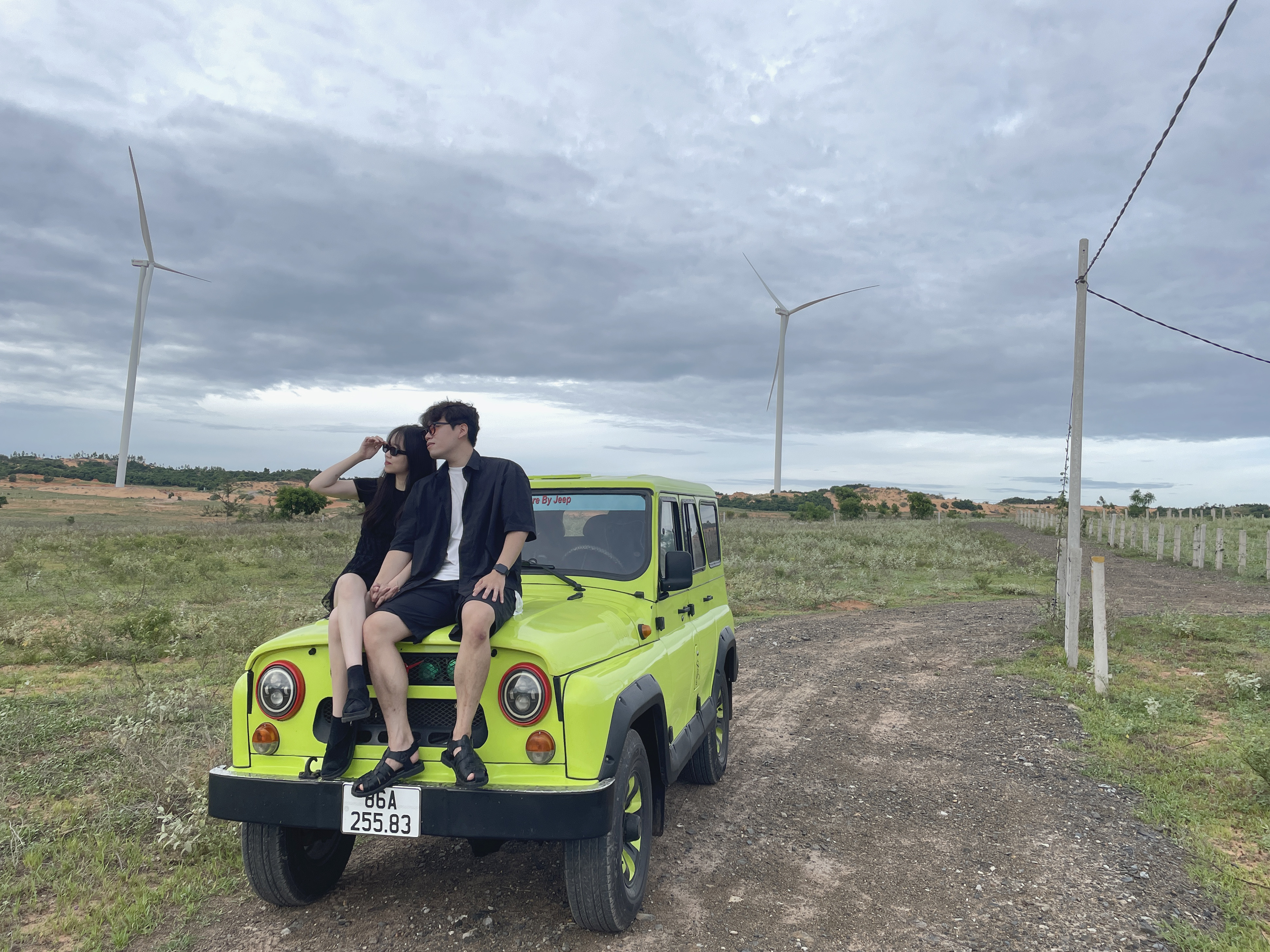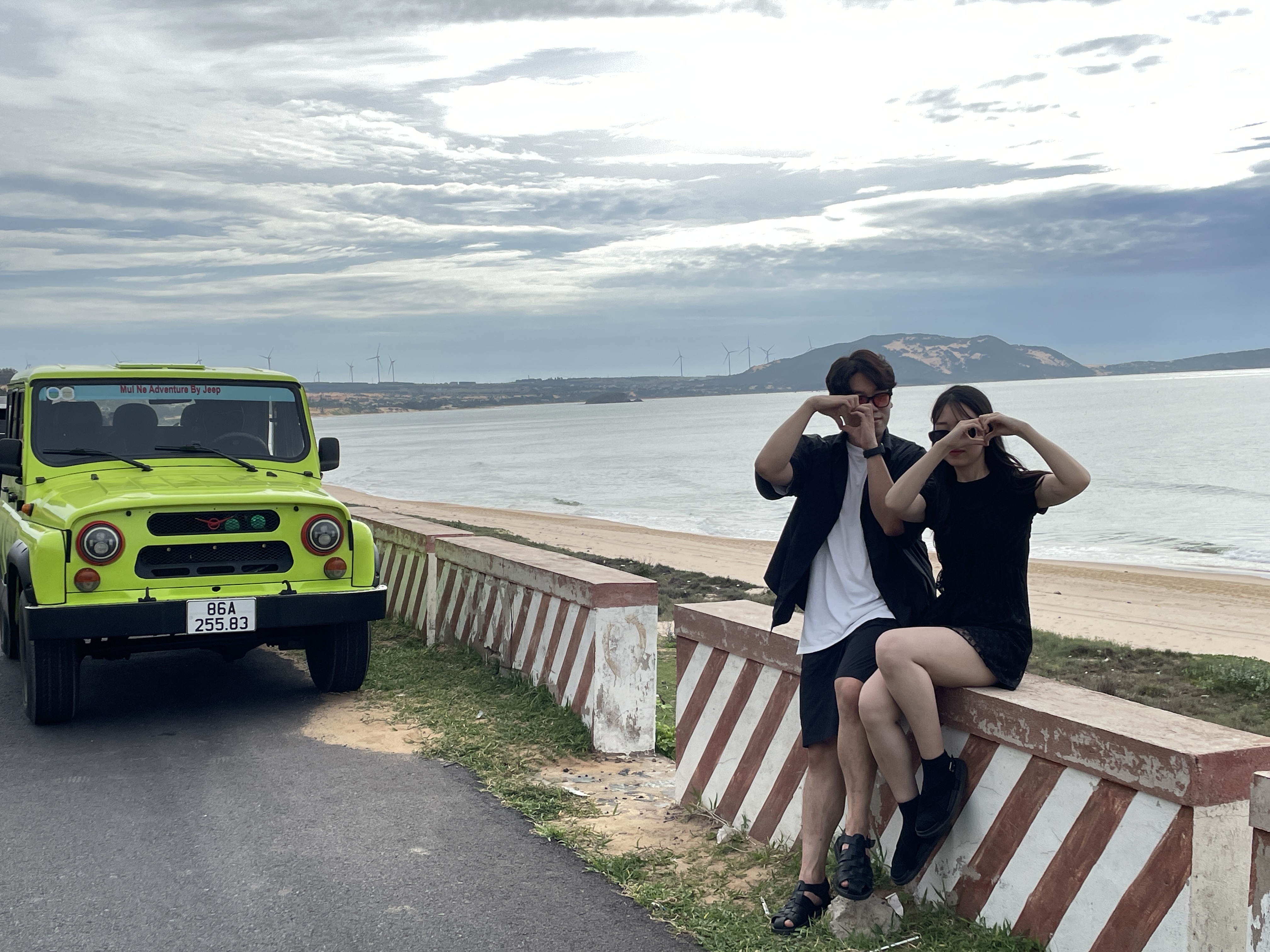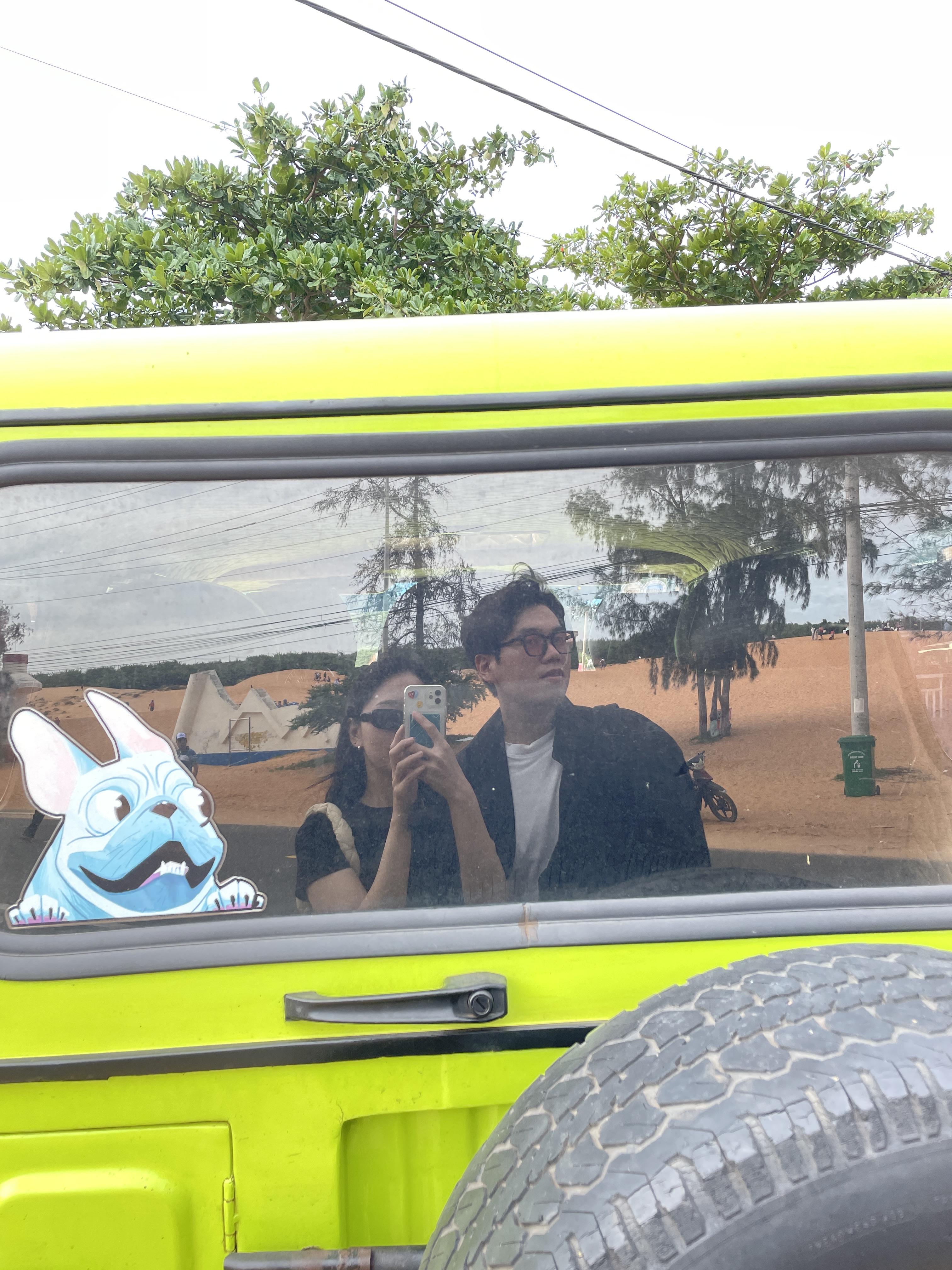 저희는 핑크색의 지프차를 원해서 사전에 말을 하긴 했는데 그건 기사 배정에 따라 정해지는거라 복불복이라고 하더라고요.. 아쉽게 저희는 형광색차... 그래도 이뻤어요!! 컬러가 쨍하니~ㅋㅋㅋ )