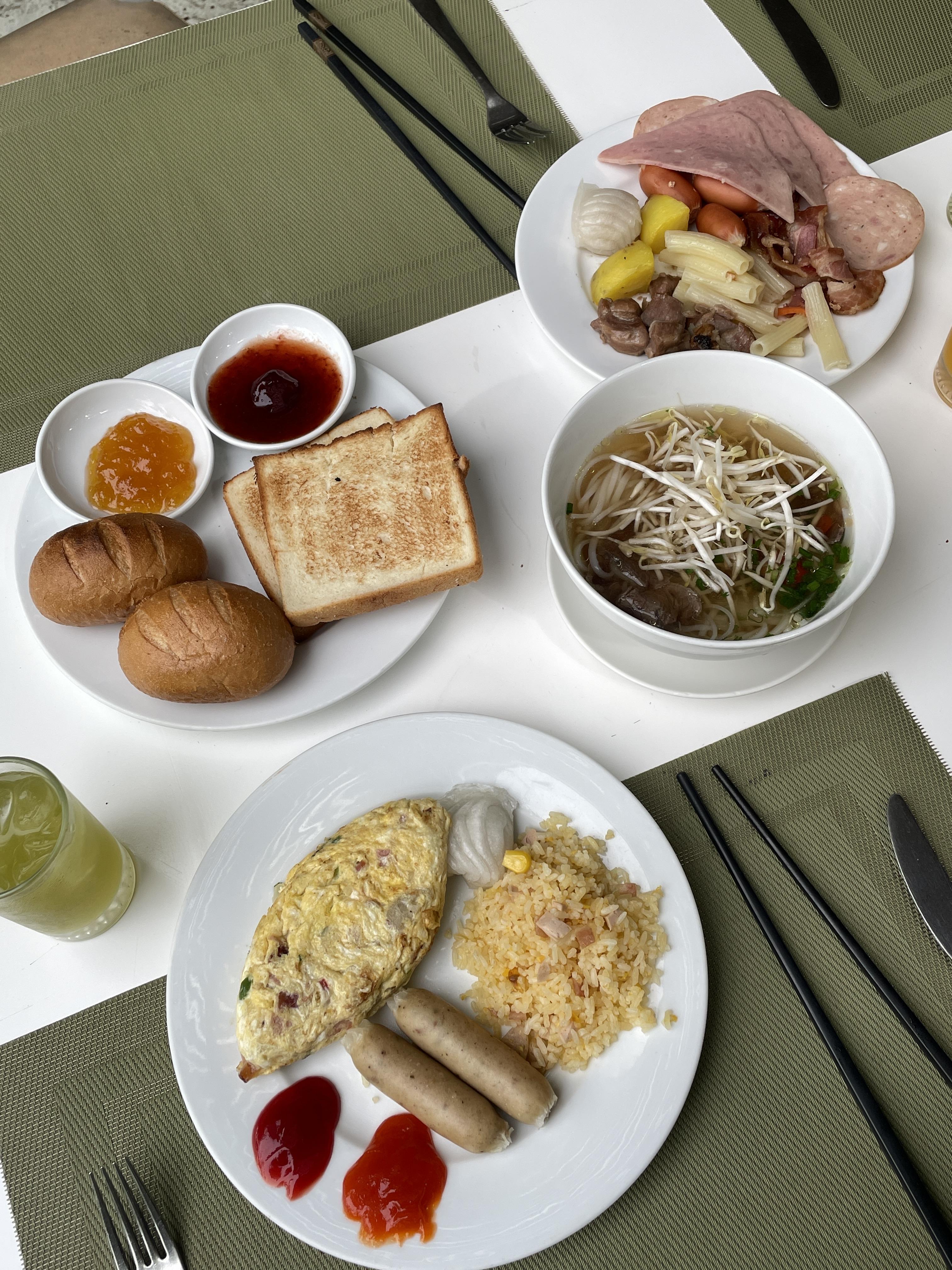 호텔에 도착하자마자!! 조식먹으러 고오~고오~!! 조식먹으면서 수영장을 바라보는데 오늘은 조식먹고 조금 쉬다가 물놀이 하기로 했어요!! 우선 새벽부터 투어를 돌았기 때문에 배가 너무 고파서 우선 먹어야겠어서!! 빵도굽고 오믈렛 쌀국수 등등 엄청먹고 한숨 자러 방으로 들어갔어요 ㅋㅋㅋㅋ 역시 고생뒤 맛있는 음식은 !!!? 항상 옳아요!!😊😊