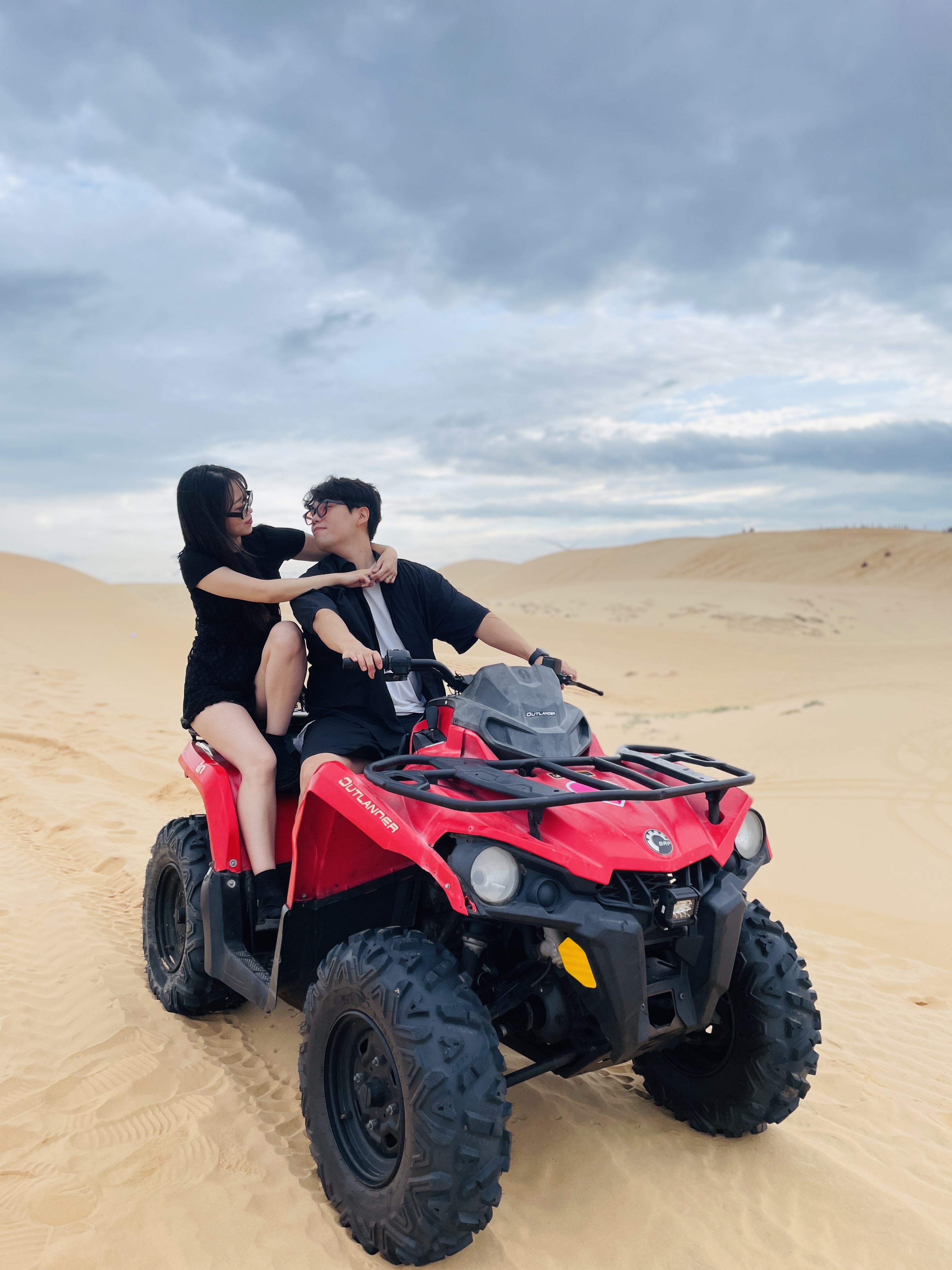 ATV 진짜 너무 재밌더라고오!? 이 새벽부터 다이나믹한 바이크를!!! 안 떨어지려고 어디를 앉아야하고 잡고 고정해야 하는지 초집중하고 들었어😗😗 샌듄 정상에 도착하니깐 사막 뷰가 말로 표현 못 할 정도로 너무 멋있었어요!!!!👍👍