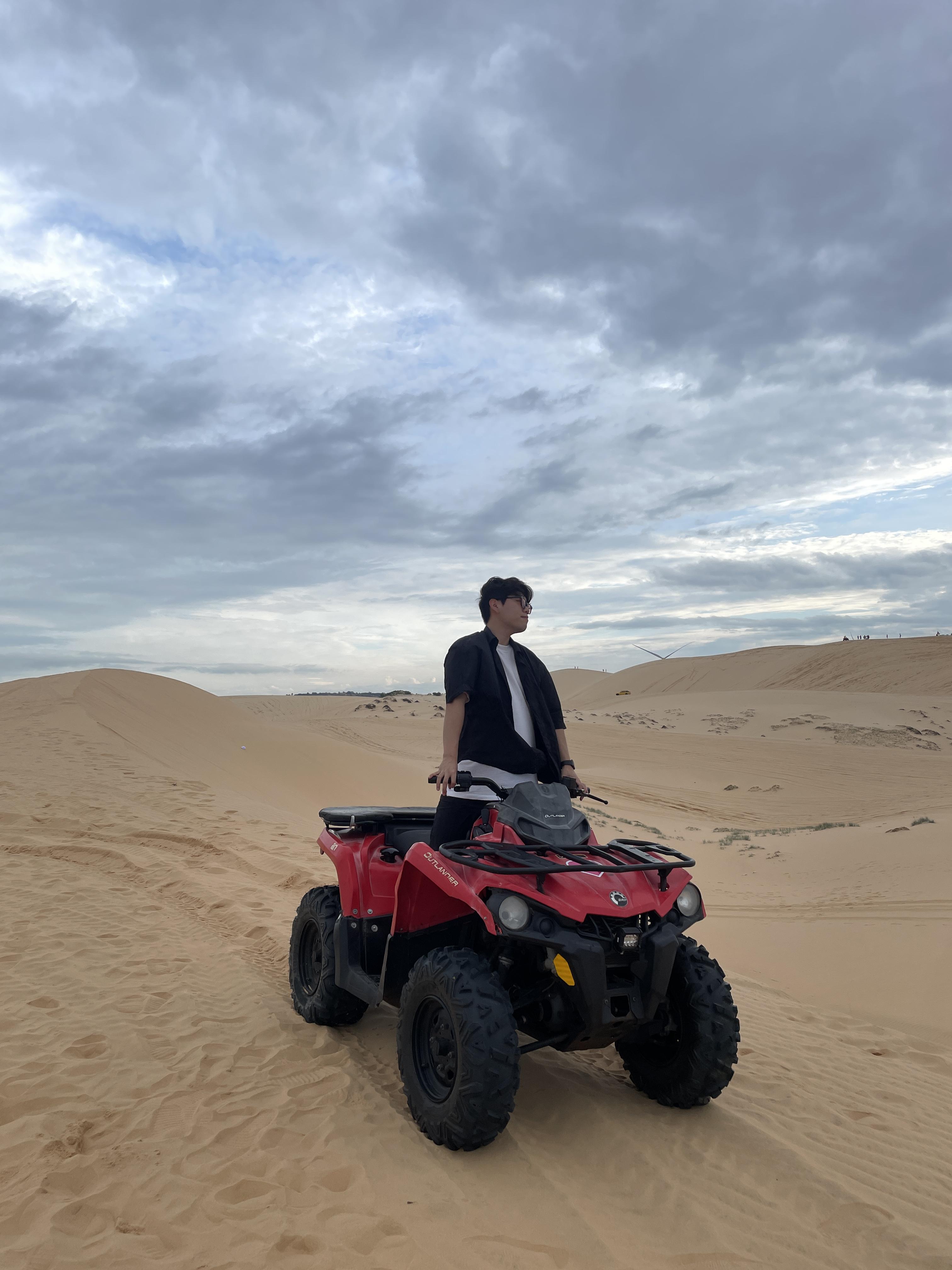 화이트 샌듄 입구에 도착하면 기사님이 ATV바이크 운전자를 안내해 주세요. 거기서 현금으로 지불하고 배정 받은 ATV바이크를 타고 샌듄 정상과 샌듄 호수로 이동시켜 주면서 사진도 찍고 한동아 머물 수 있어요!!