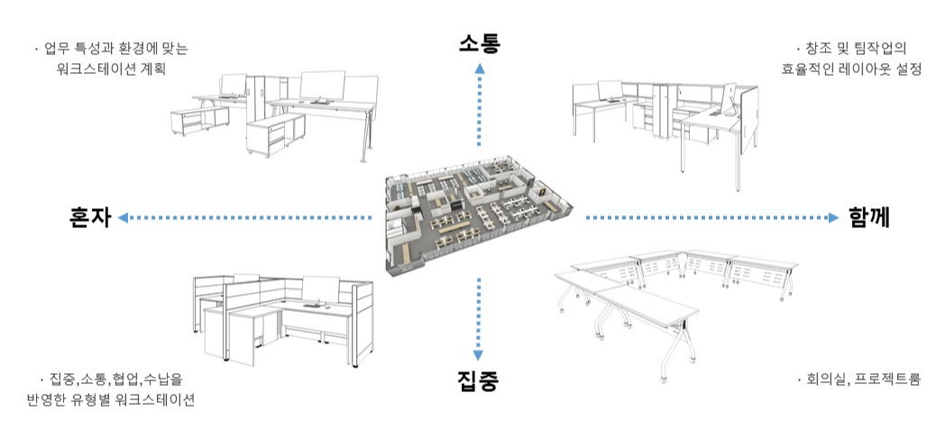 회사에서 하루에 가장 많은 시간을 보내는 공간이자 각자의 스타일이 녹여져 있는 업무공간!! 기업마다, 직무마다 일하는 방식이 다릅니다. 그에 따라 필요로 하는 업무 환경도 달라지고 있습니다.