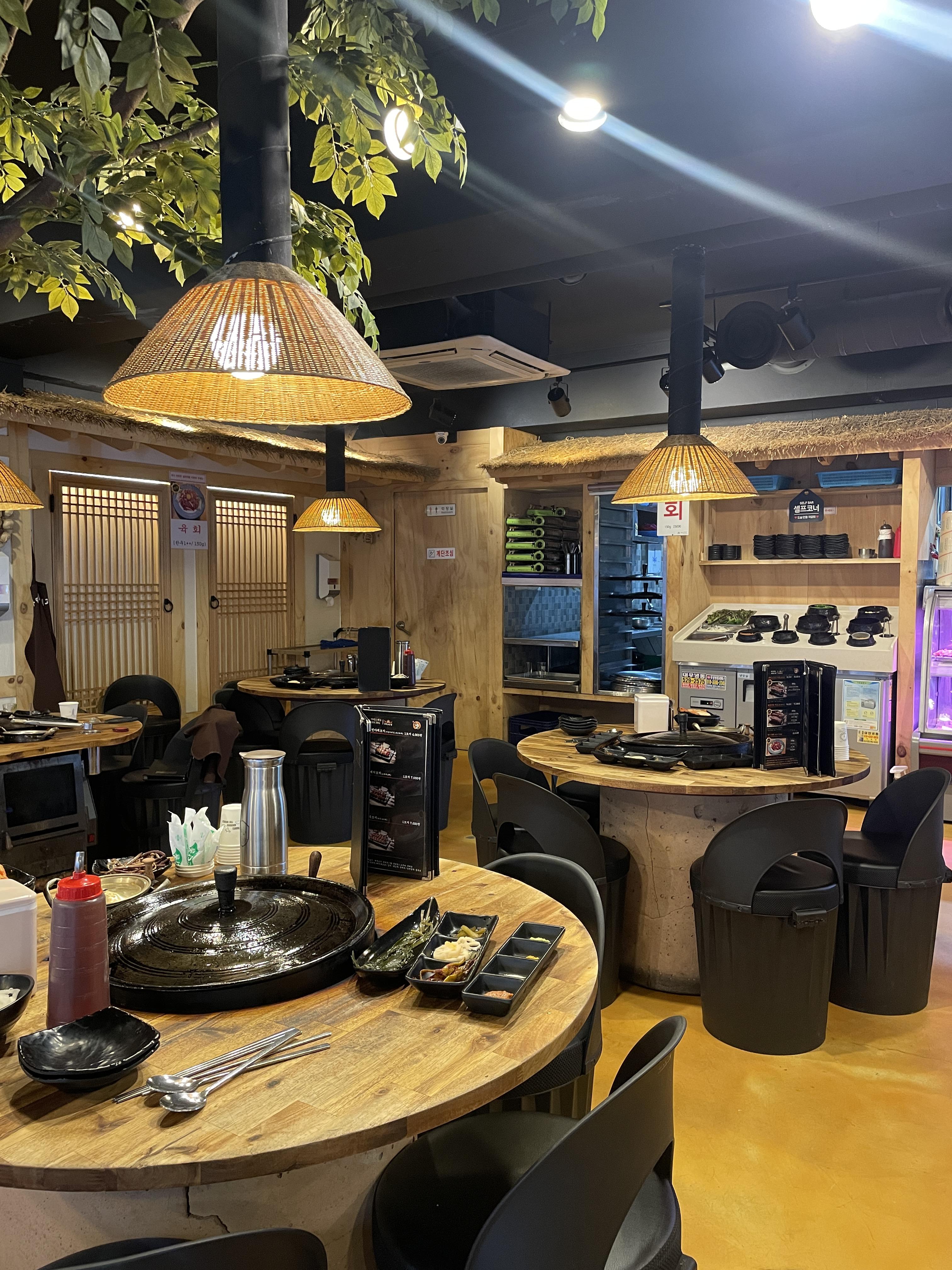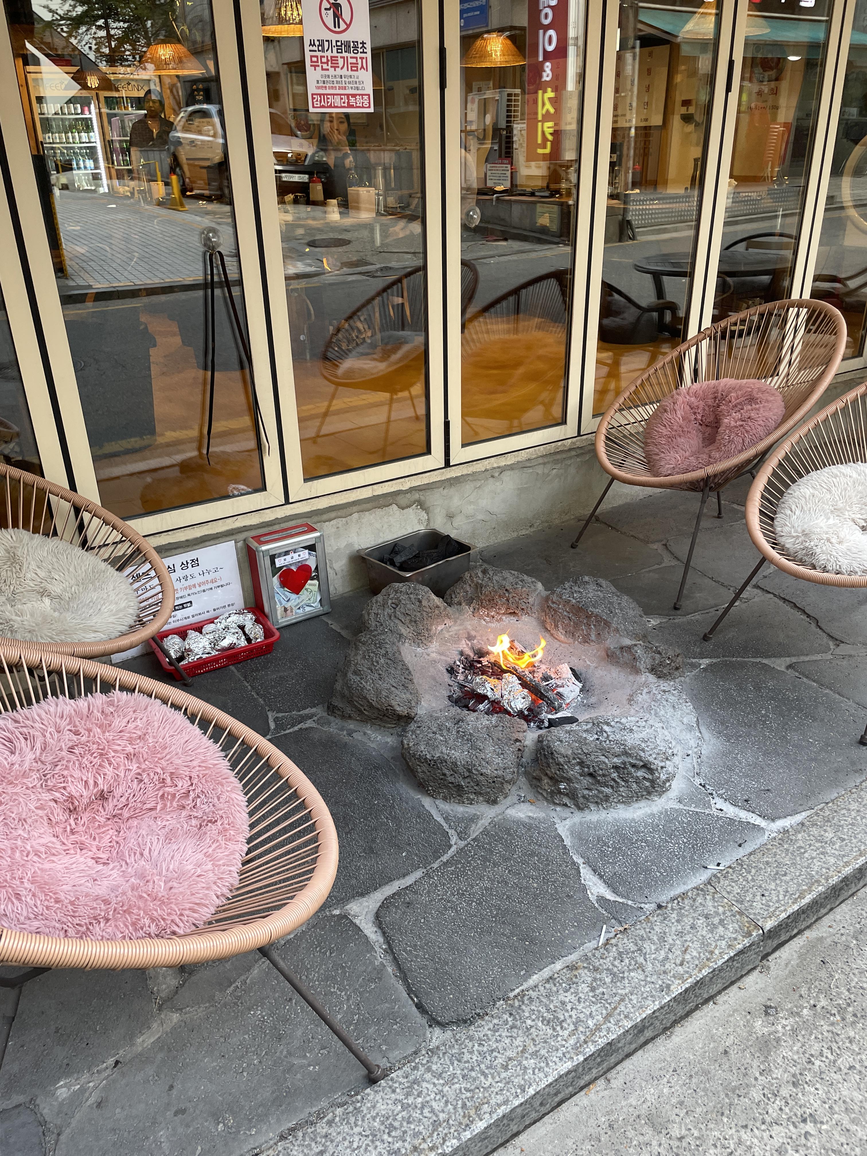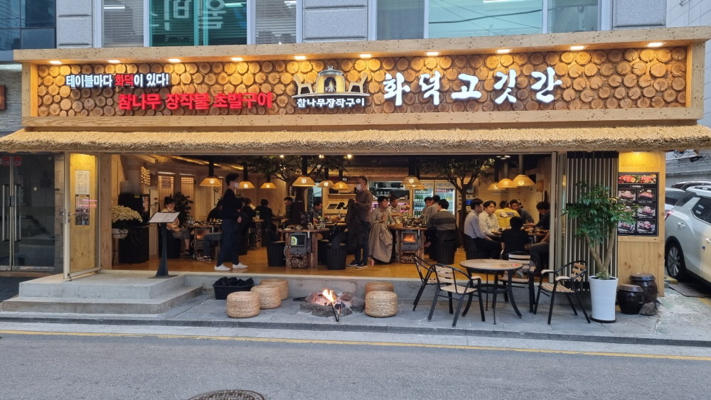 인테리어가 오픈형이라 외부에서도 테이블마다 있는 화로와 참나무가 보여서 따뜻한 분위기를 조성해서 너무 좋았어요