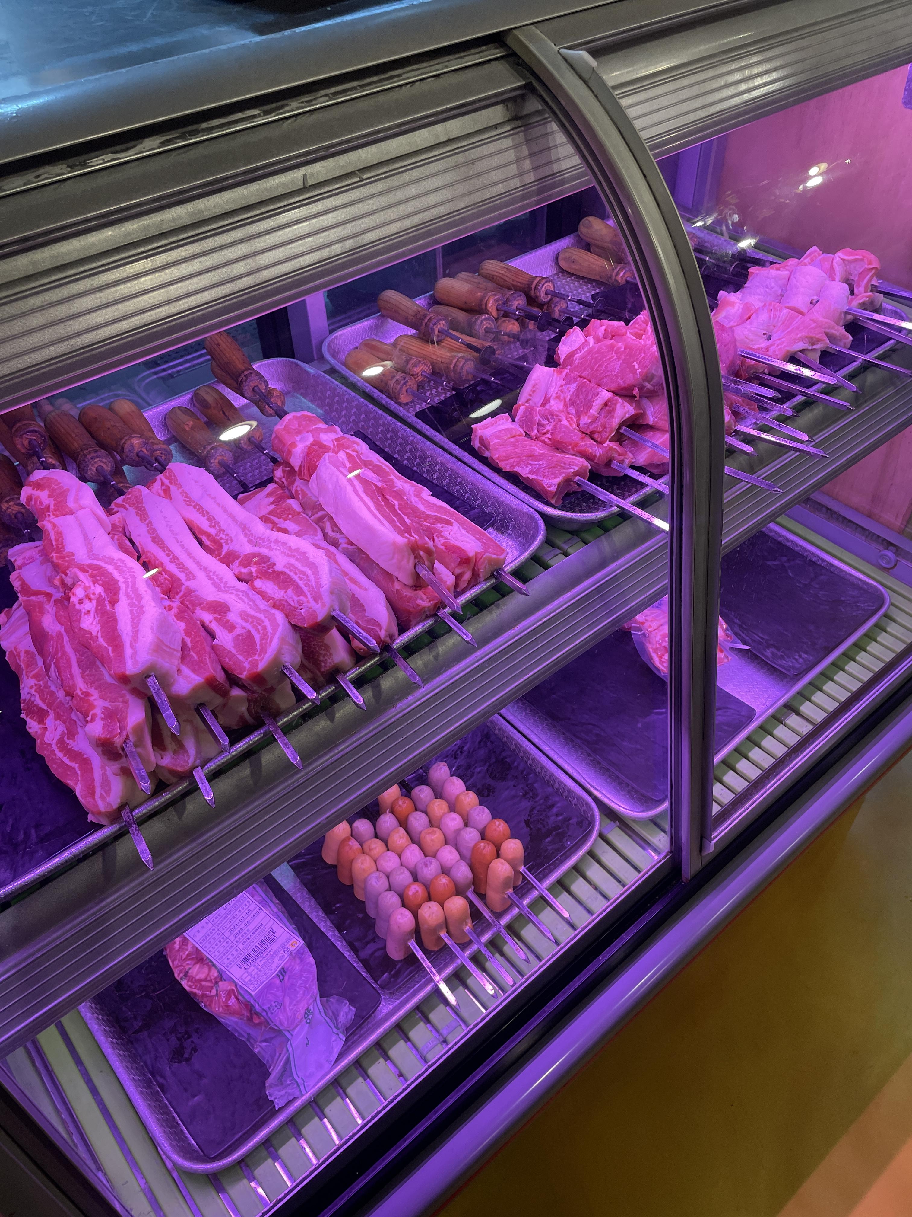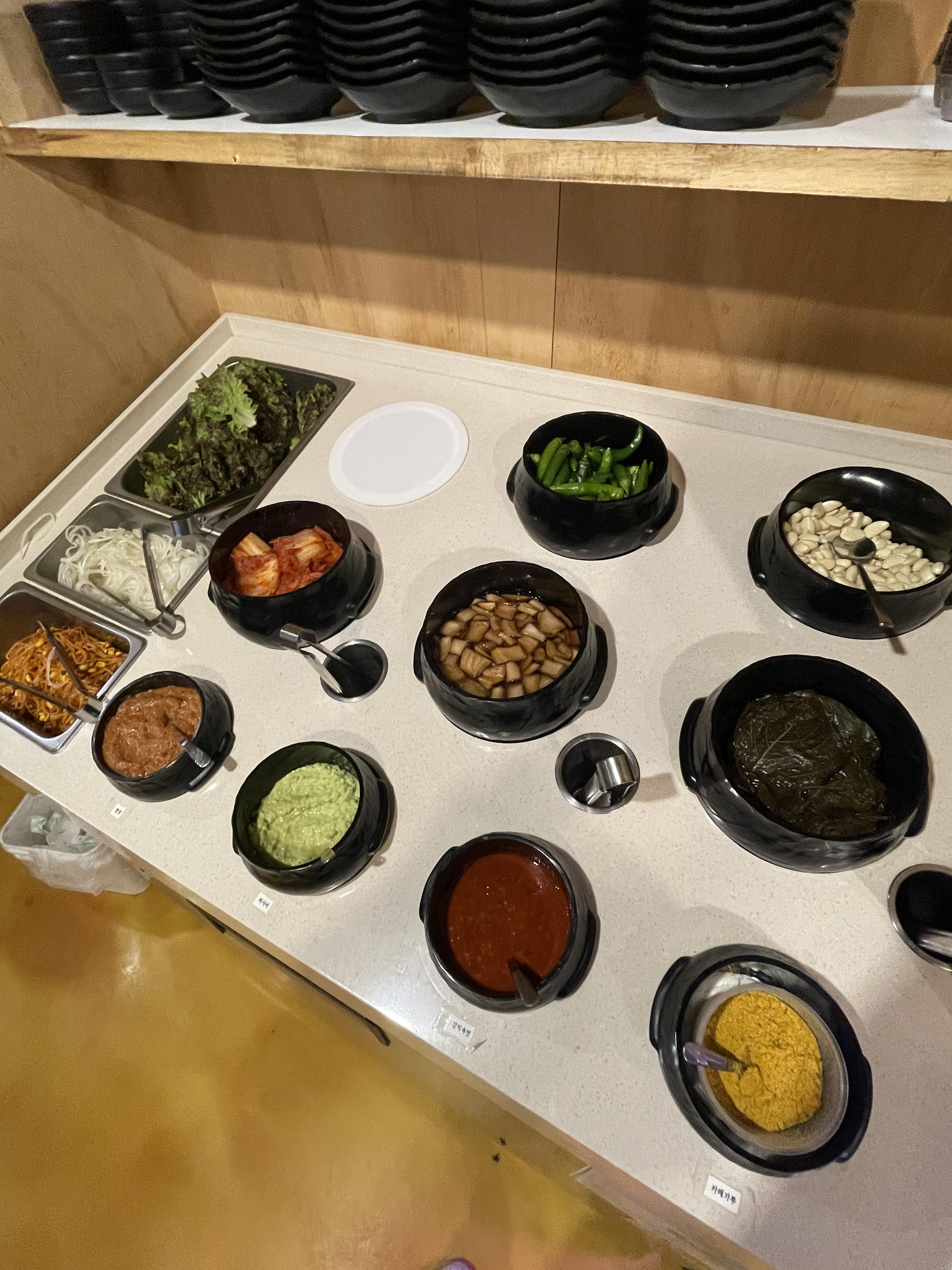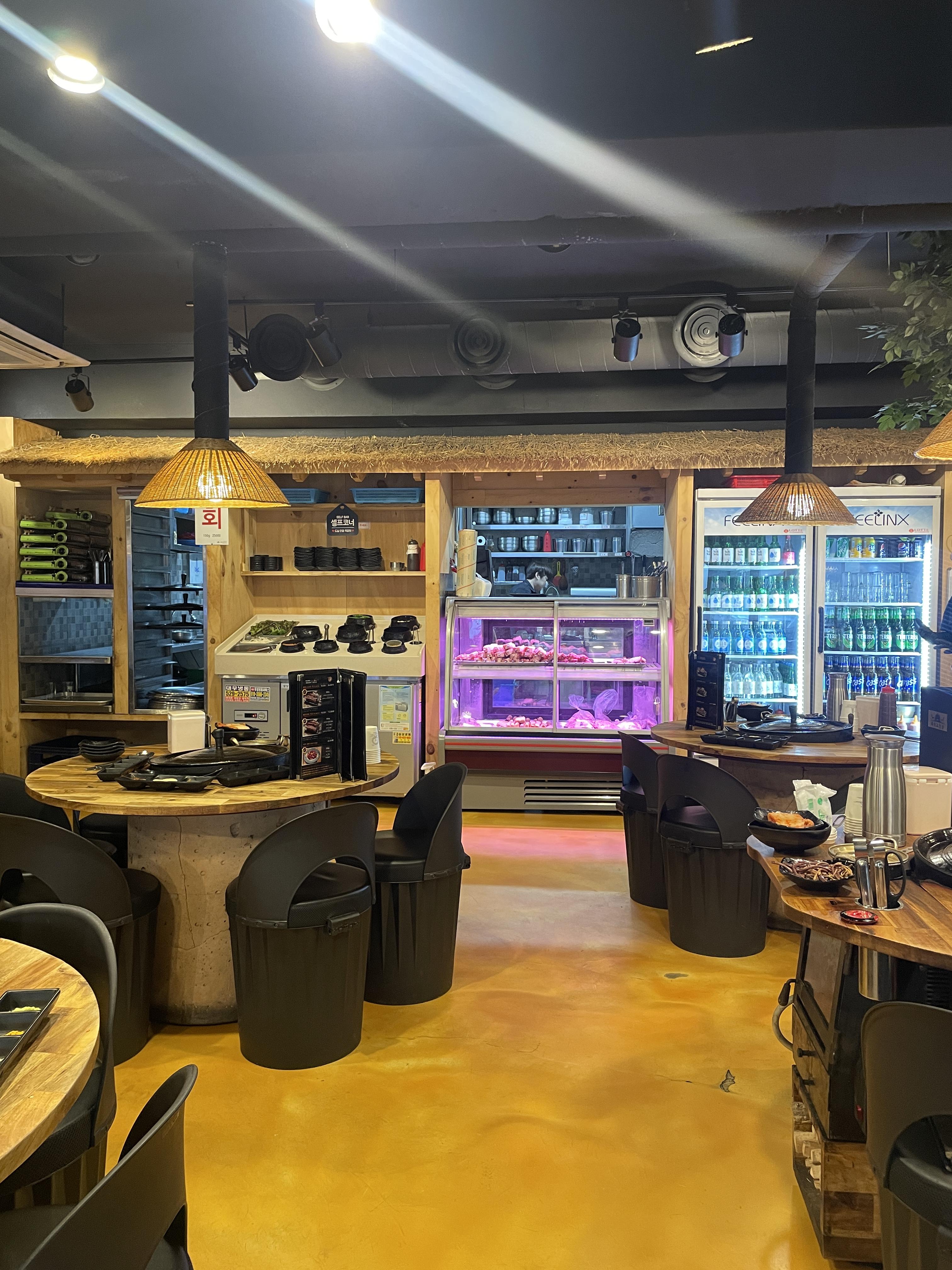 화덕고깃간은 12개 정도 테이블이 배치되어 있어요 그리고 정육점처럼 운영되고 있어요 이렇게 신선한 고기들을 바로 볼 수 있으니깐 질 좋은 고기를 공급하고 있다는 느낌이 들어서 너무 좋았어요 그리고 셀프바에는 각종 쌈채소들과 양 넘들이 있어서 기호에 맞게 가져다 드실 수 있어요 😝😝