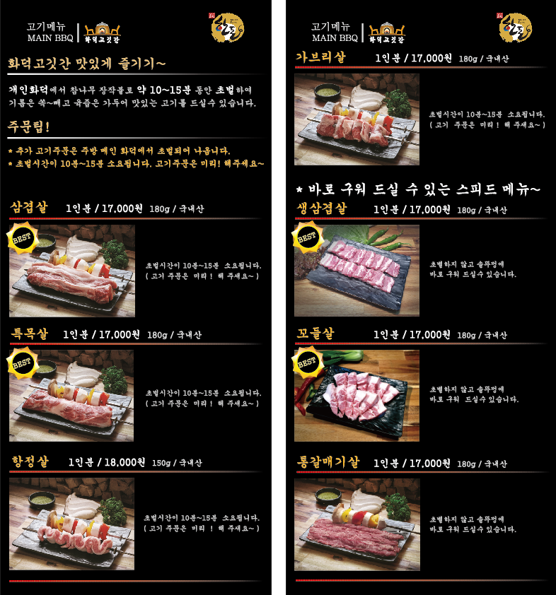 제가 두 번째 방문이라 팀원분들이 메뉴를 추천해 달라고 하셔서 약간 부담스럽긴 했지만 예전에 먹었던 맛을 기억하면서 바로 생삼겹살 특목살을 시키고 꼬들살도 같이 시켰어요!!!