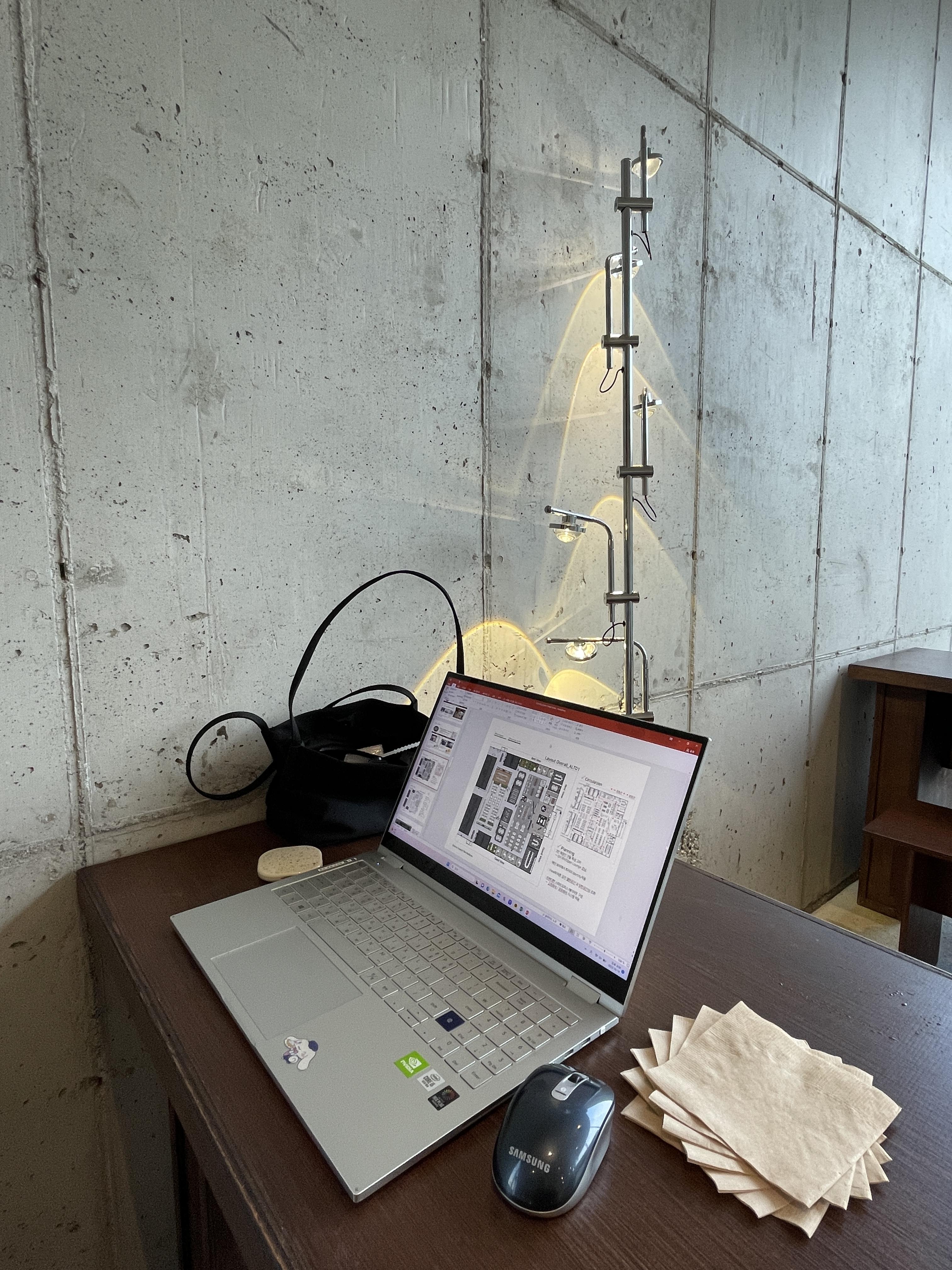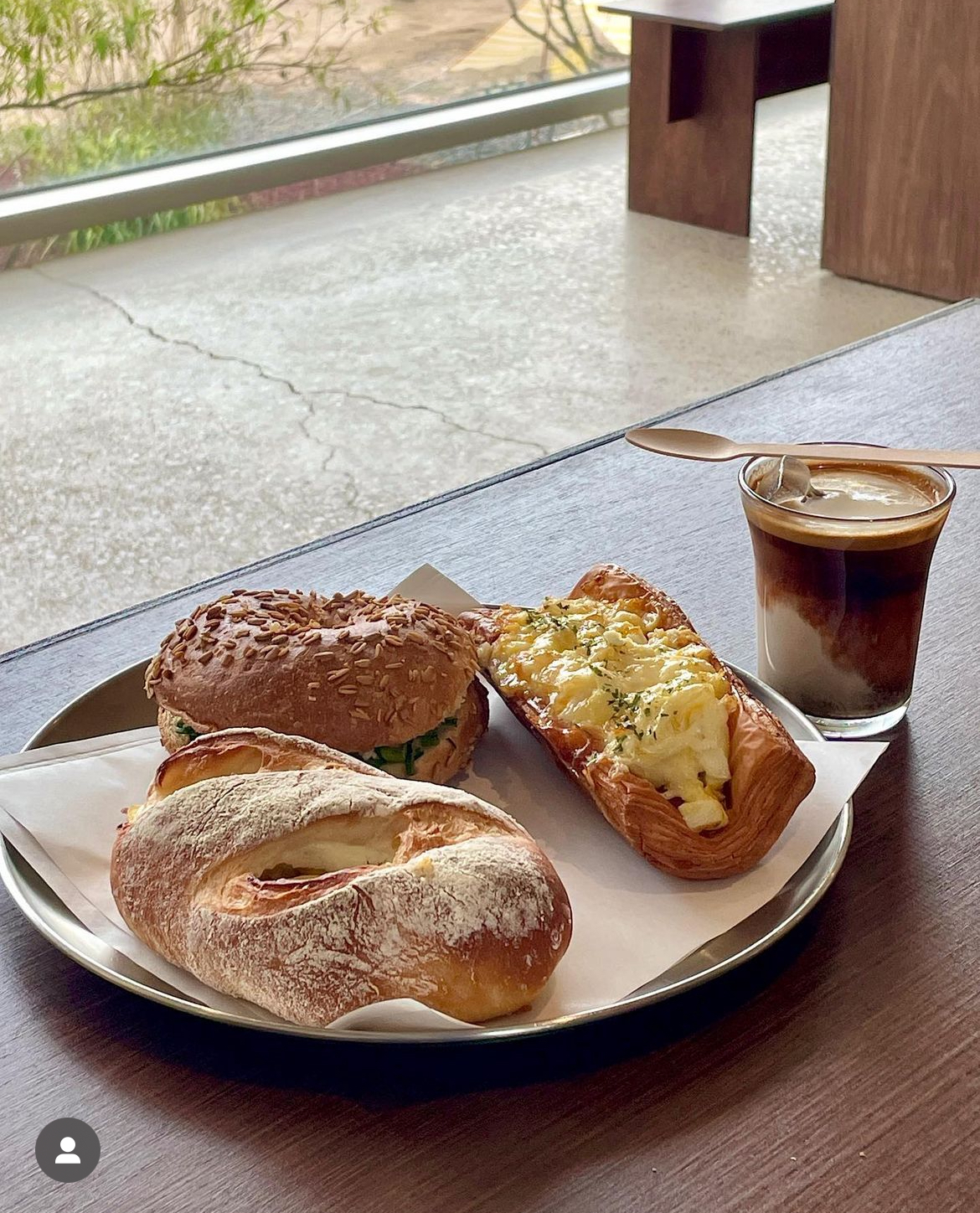 1층에는 베이커리 판매대와 리셉션이 위치해 있고 화장실이 있어요 전체적으로 천고가 높아서 뻥 뚫린 형태라 덕분에 답답하지고 시원한 분위기에요👍🏻👍🏻 콘크리트 구조와 우드톤+스틸 마감재의 가구가 너무 조화로웠어요👍🏻👍🏻