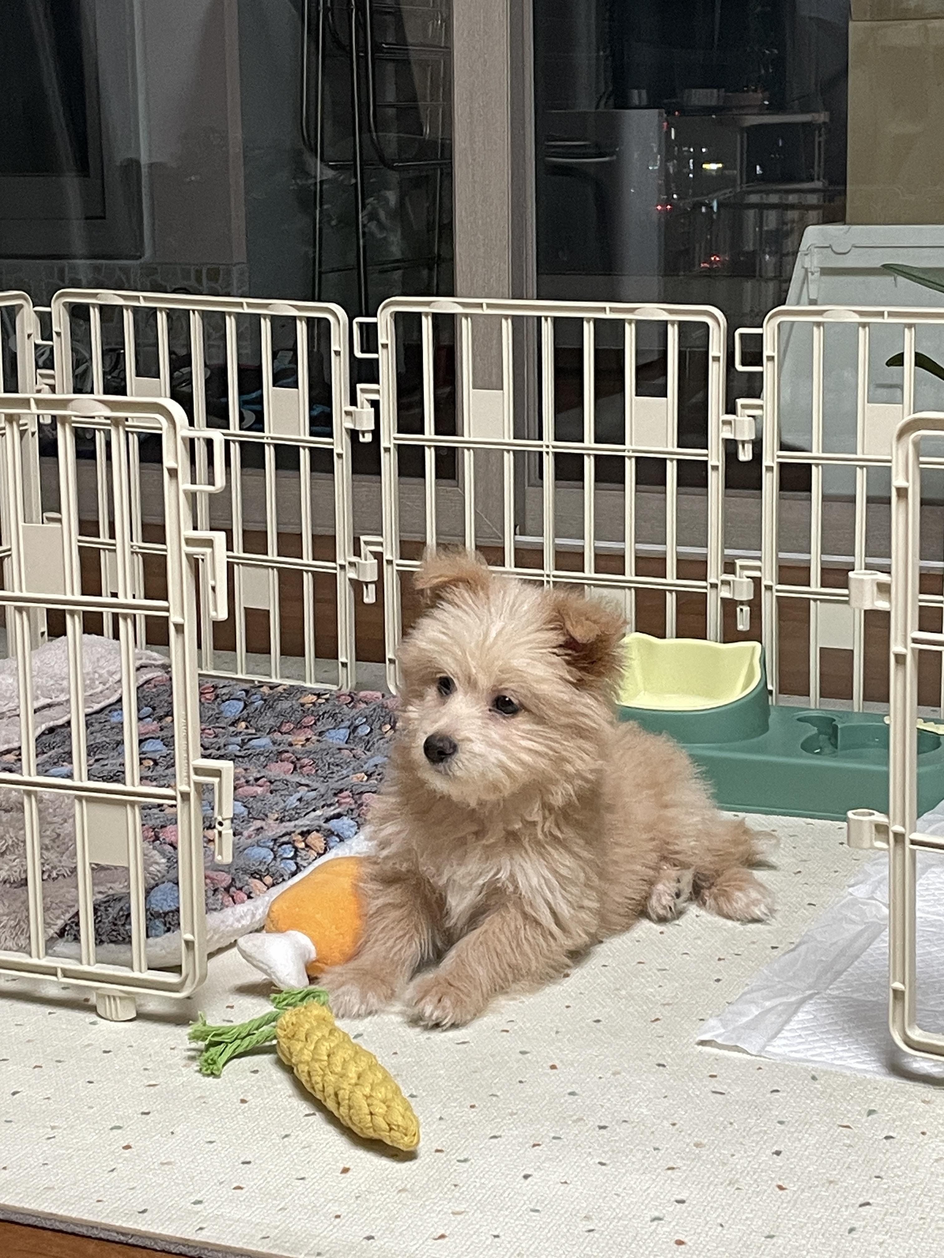 룽지 이름이 어떻게 탄생되었느냐~~!!!😎😎 별건 아니지만 룽지를 보면 딱 (누)룽지가 연상되지 않으신가요?ㅋㅋㅋ 그래서 룽지는 룽지입니다!!😋😋 처음 여자친구 집에 왔을 때는 낯선 환경이라 울타리 안에만 있고 꼬리도 축 내린 채 겁먹고 많이 낯설어했다고 해요!! 그래도 시간이 지날수록 꼬리가 올라오면서 적응 시작 했다고 하네요? ㅎㅎ 귀여운 자식!!