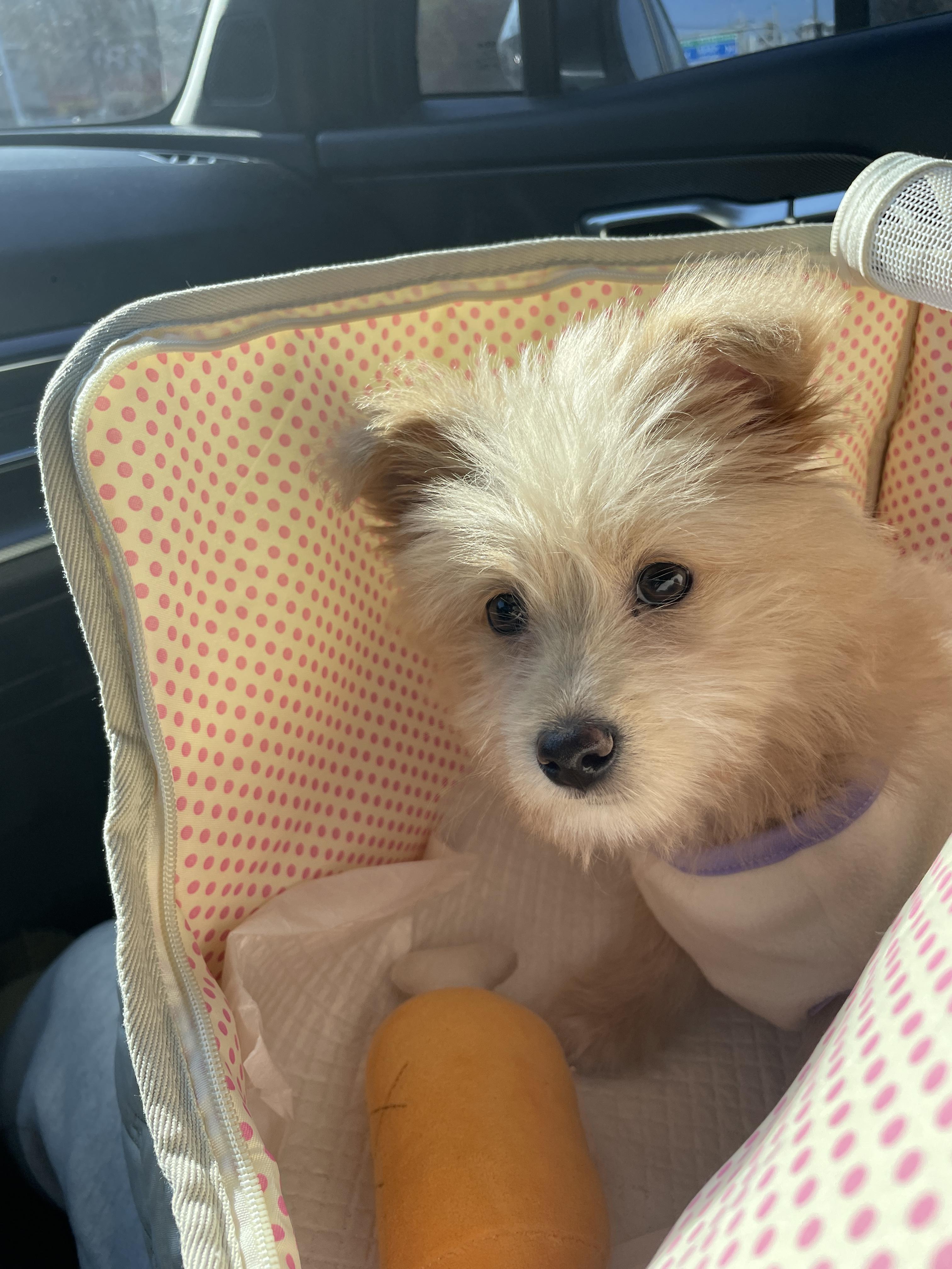 드디어 룽지를 처음 본 날입니다!!! 룽지가 아직 접종을 다 맞지 않아서 처음 보는 겸 친해질 겸 해서 동물 병원에 같이갔어요. 룽지를 처음 봤을 때 카시트에 쏙 잇는 모습으로 왔는데 진짜 너무 귀엽고 소중하더라고요!!