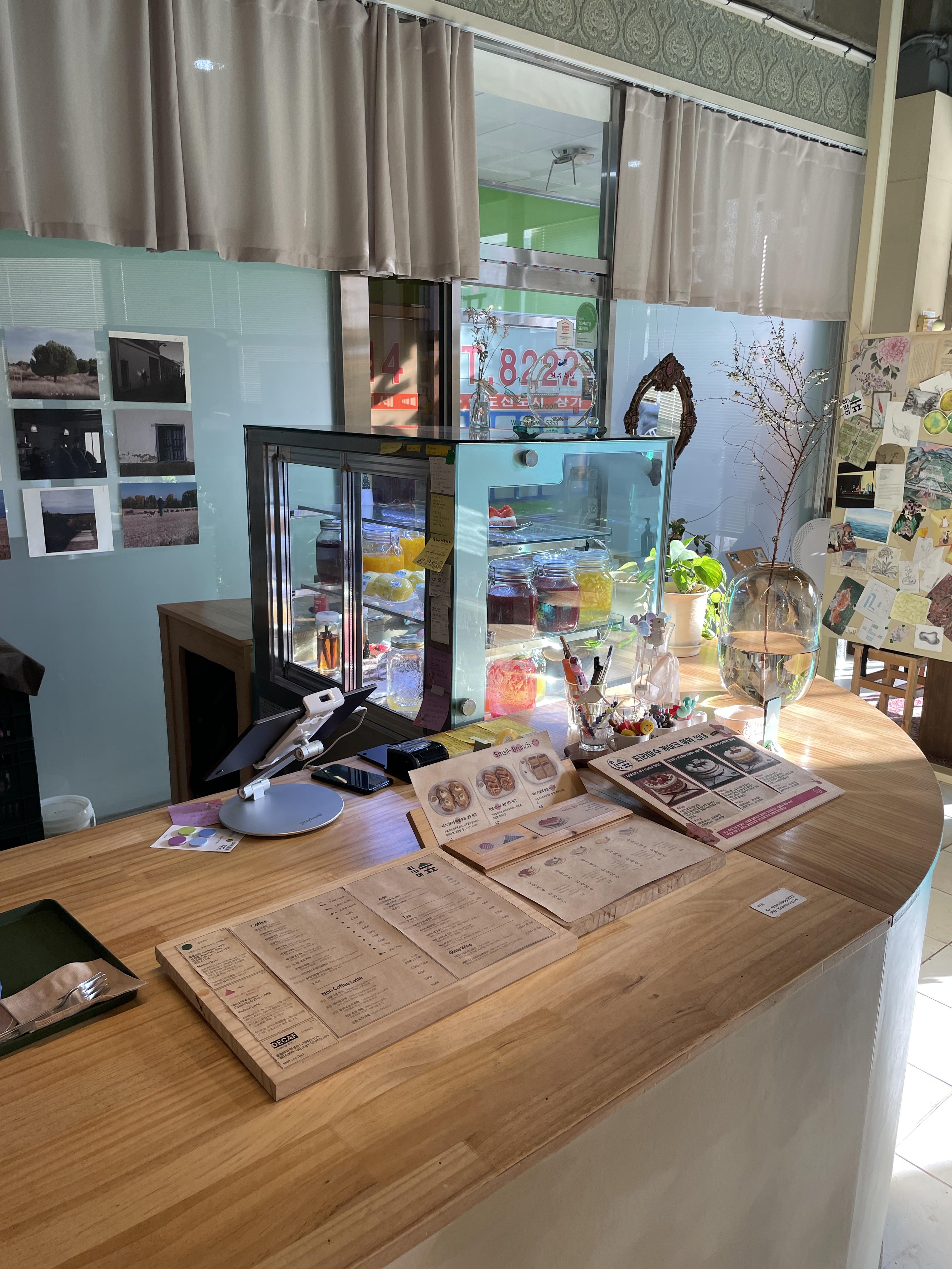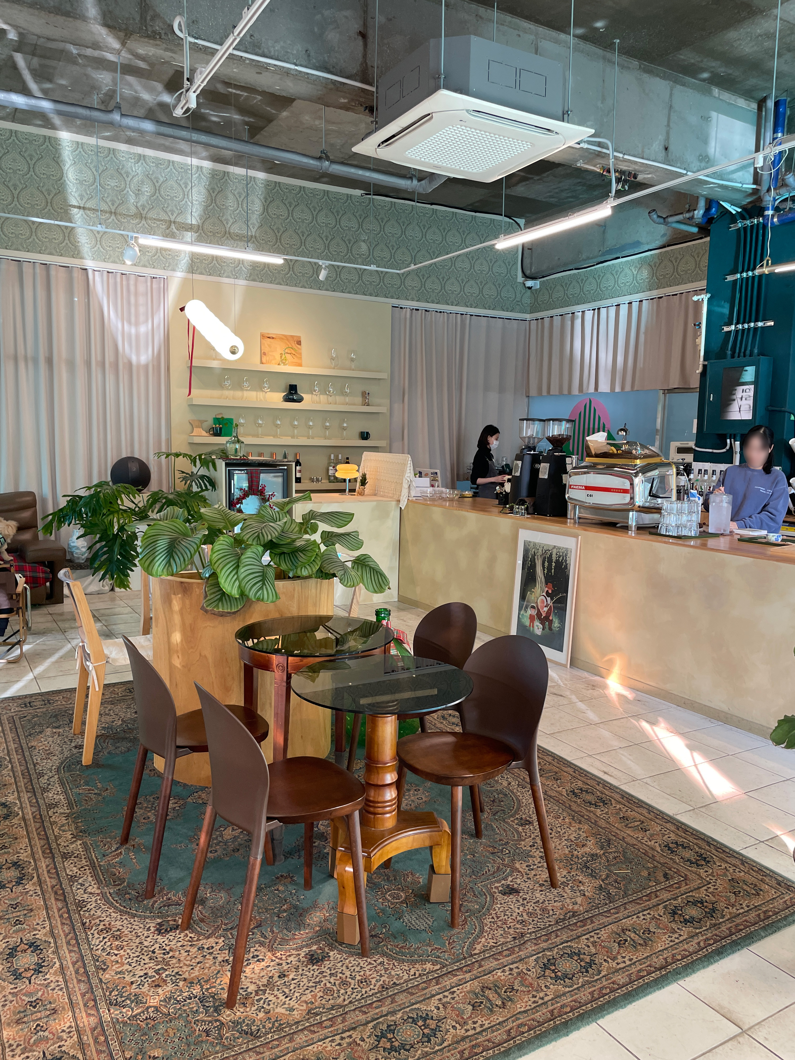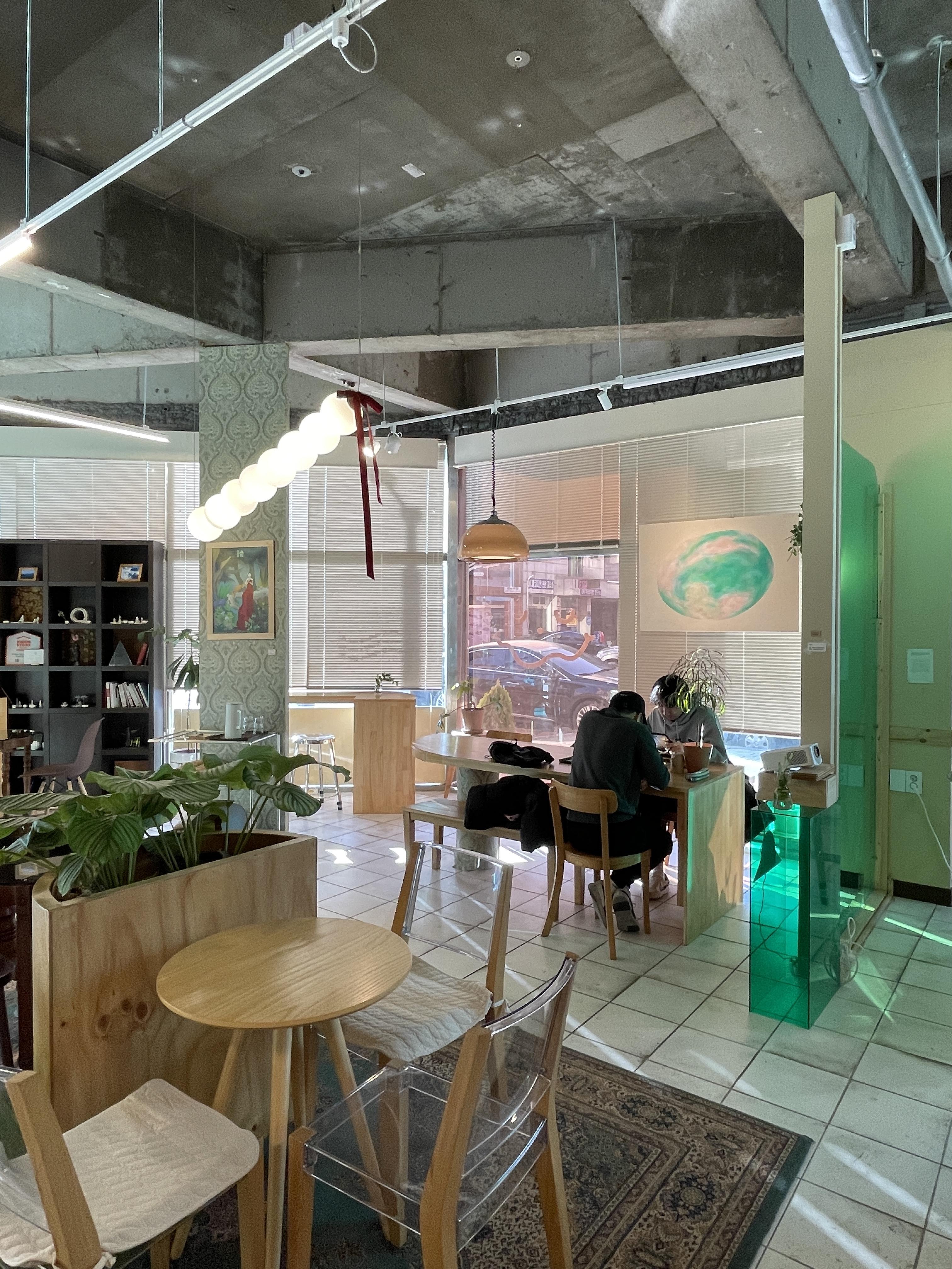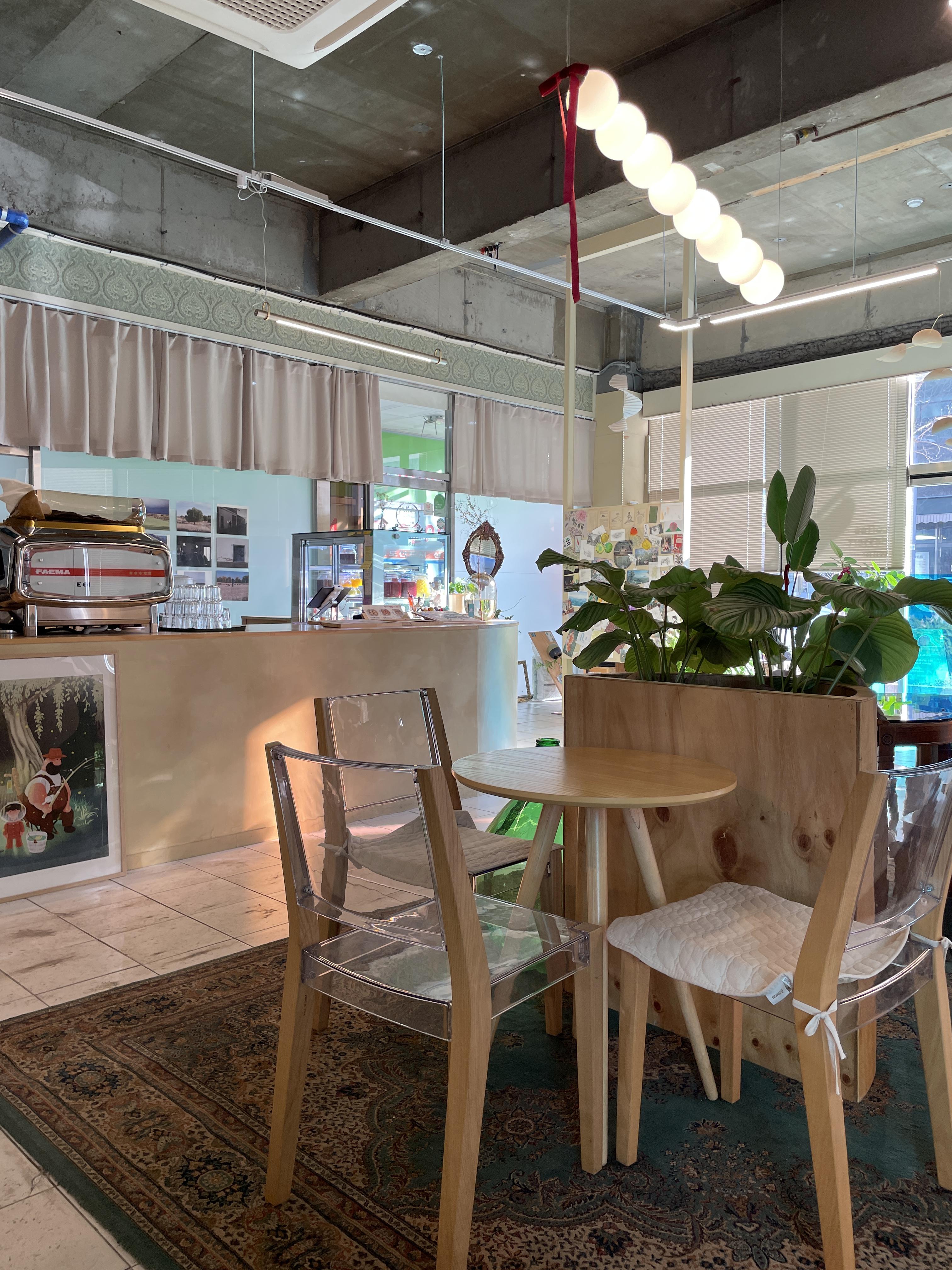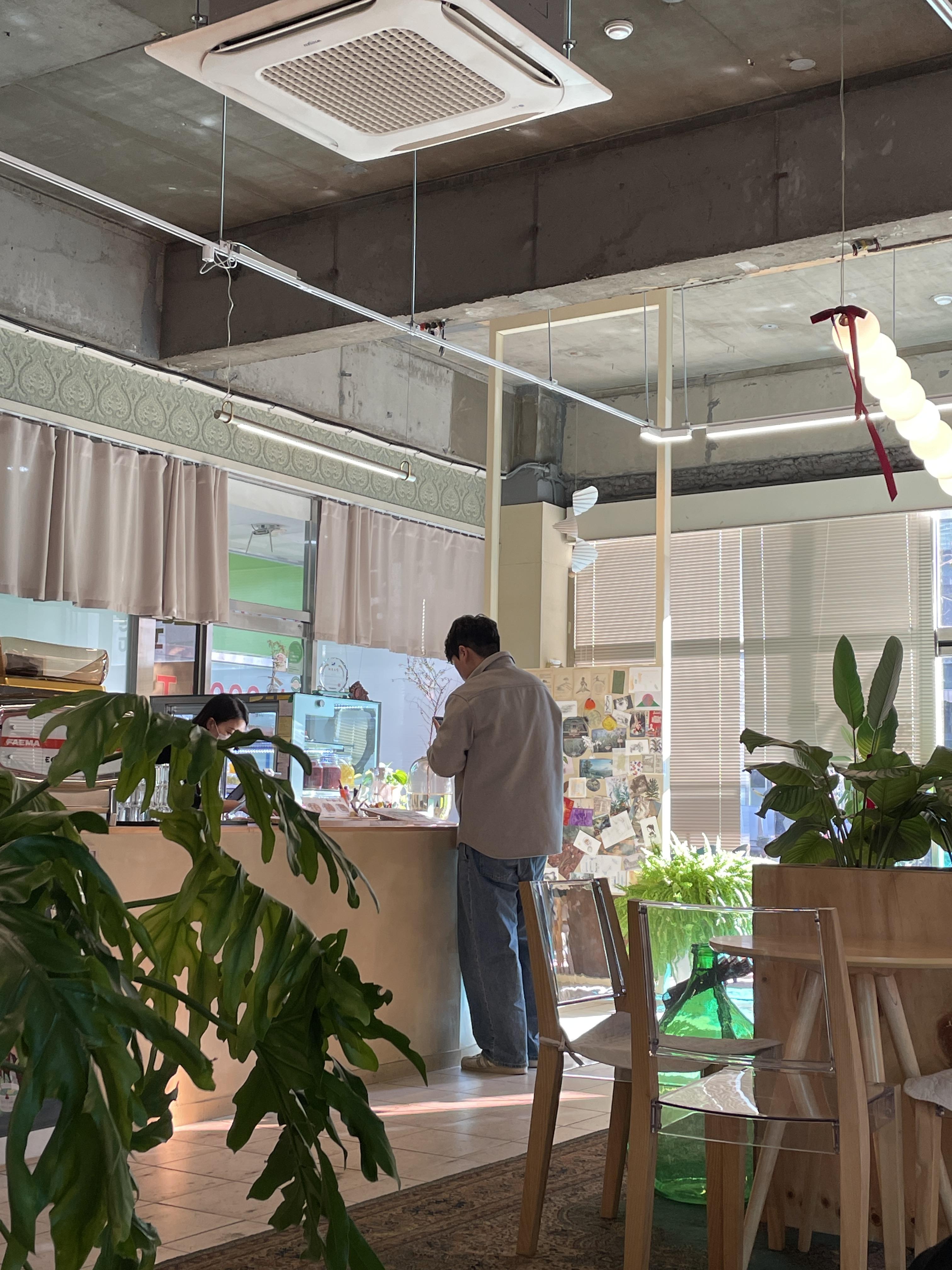사장님께서는 처음 오픈할 때부터 초록의 느낌으로 인테리어를 하고 싶으셨다고 하셔서 컨셉은 그린으로 잡으신 거 같아요안에 들어가보니깐 밖에서 보는 것보다 내부 분위가 훨씬 좋았어요😎😎 저는 들어가자마자 사진을 촬칵촬칵📸📸