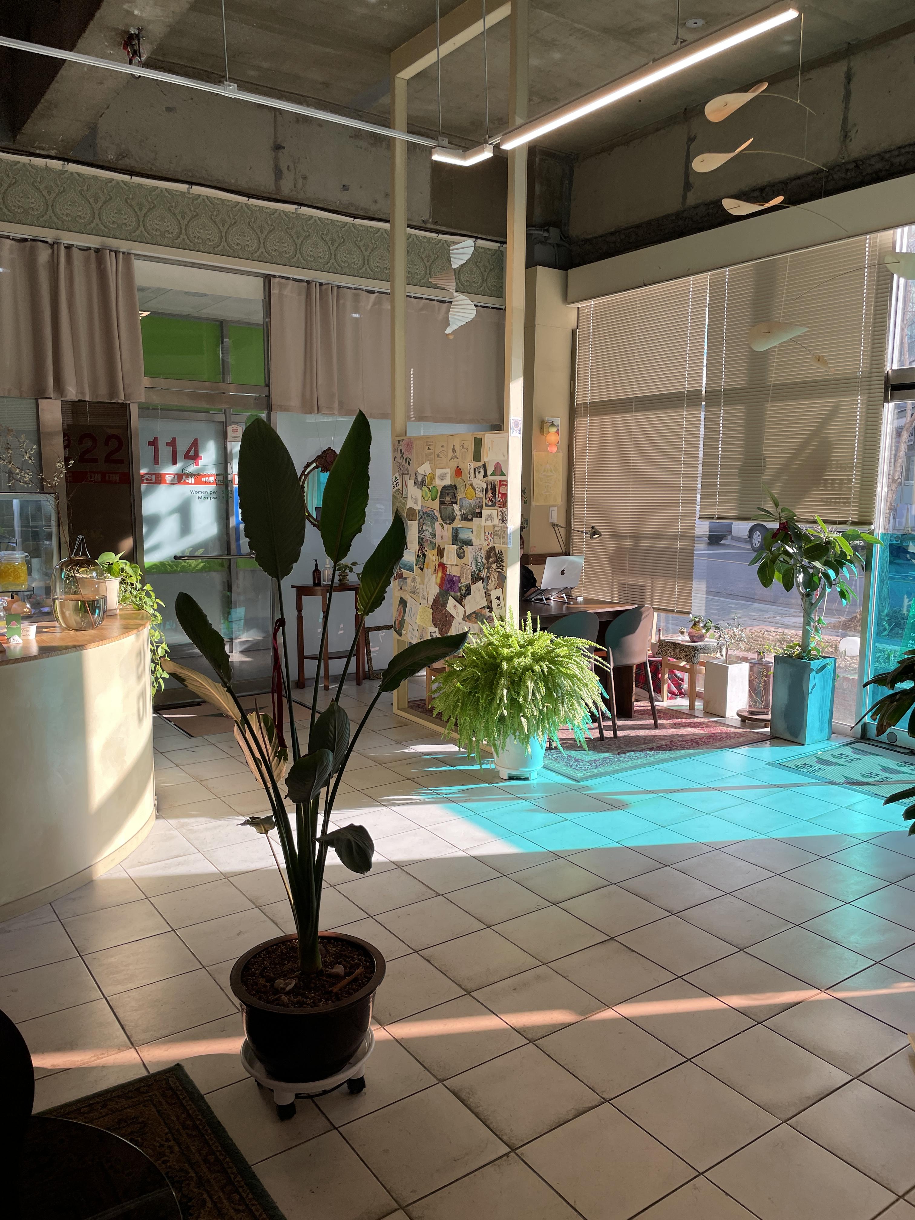 중간중간 화분들로 플랜테리어가 되어있어서 조명과 빛이 조화롭게 보이네요😊😊