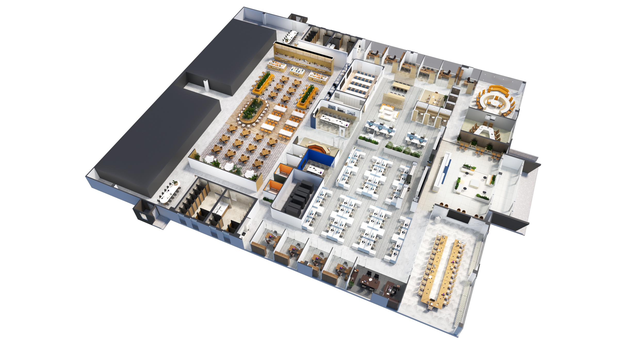 그라나 현재 하이브리드 워크 시대에서는 유동적인 유연근무제, 거점오피스, 원격근무제등 다양한 형태로 업무를 진행할 수 있기 때문에 재석률은 30%까지 급속하게 감소하였습니다. 대규모 회의실보다 규모별 회의실로 구성되고 또한 구성원들 간의 소통을 유발 하기위하여 라운지 및 휴게 시설을 배치하여 하이브리드 워크에서 필수 요소소인 공간의 유연성을 접목하여 공간 레이아웃을 설정하고 있습니다.
