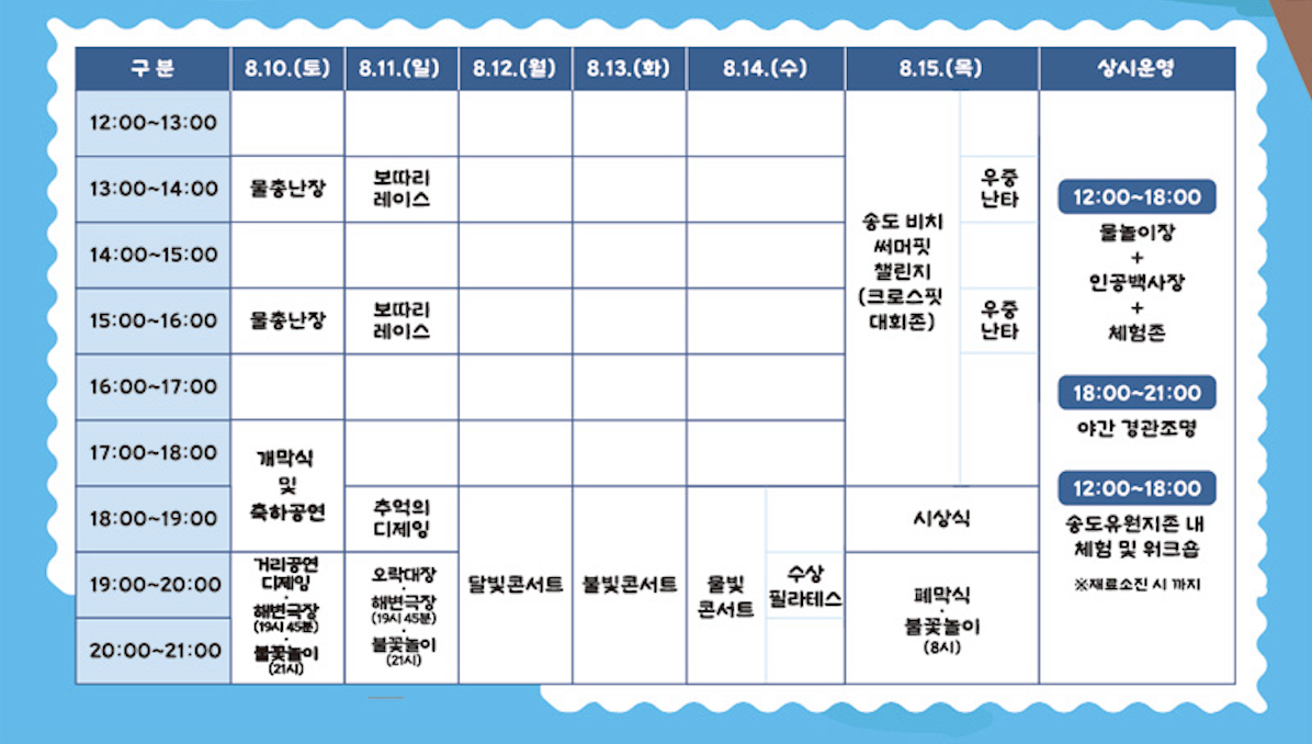 마지막으로 일정포를 공유드려요!!! 일정표를 보시고 가보고 싶은 날에 송도를 방문하시는 것도 좋을 거 같아요!!