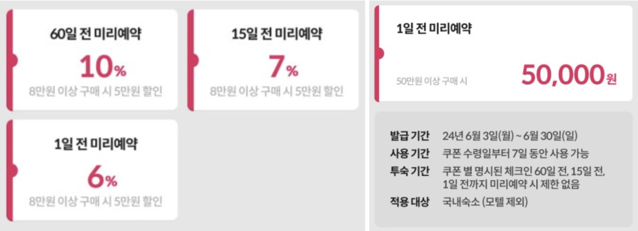 그런데 60일 전 미리예약은 7월 14일까지 숙박 쿠폰을 사용해야 하는데.. 사용 가능한 건지 의문이긴 하네요.. 제 생각에는 15일 전 미리예약이 가능할 거 같네요..??