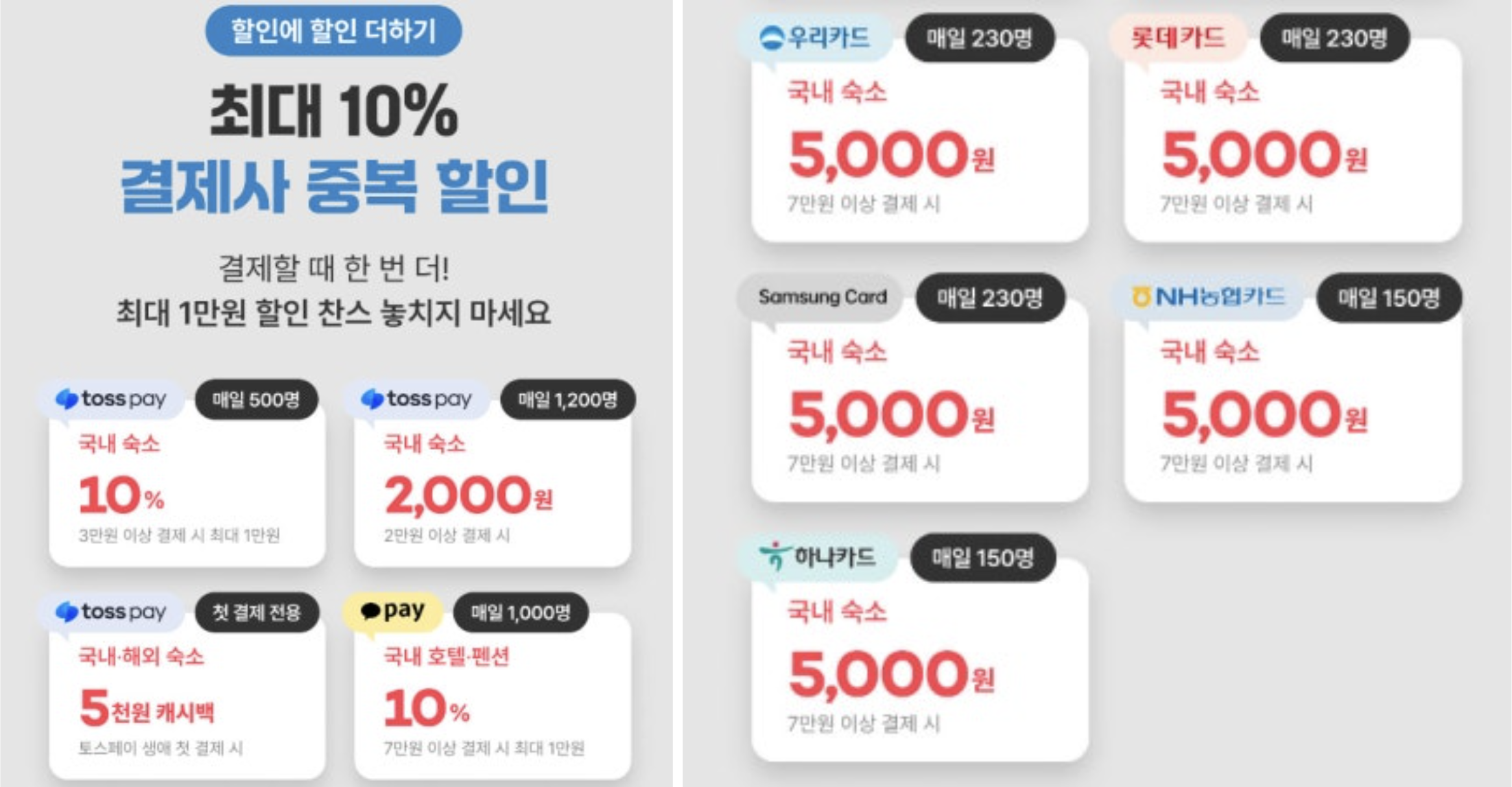 📍할인권 발급 및 혜택 업체 - 야놀자 / 여기어때 / 인터파크트리플 / 카카오톡 / 옥션 / 지마켓 등 총 31개 업체